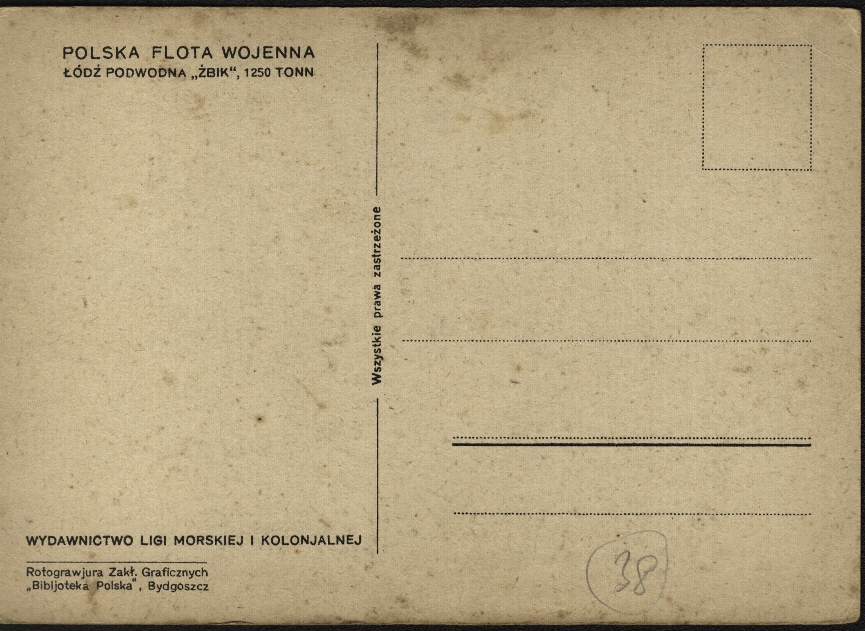 Marynarka Wojenna, ORP] Polska Flota Wojenna. Łódź podwodna "Żbik", 1250 tonn. Wydawnictwo Ligi Morskiej i Kolonjalnej