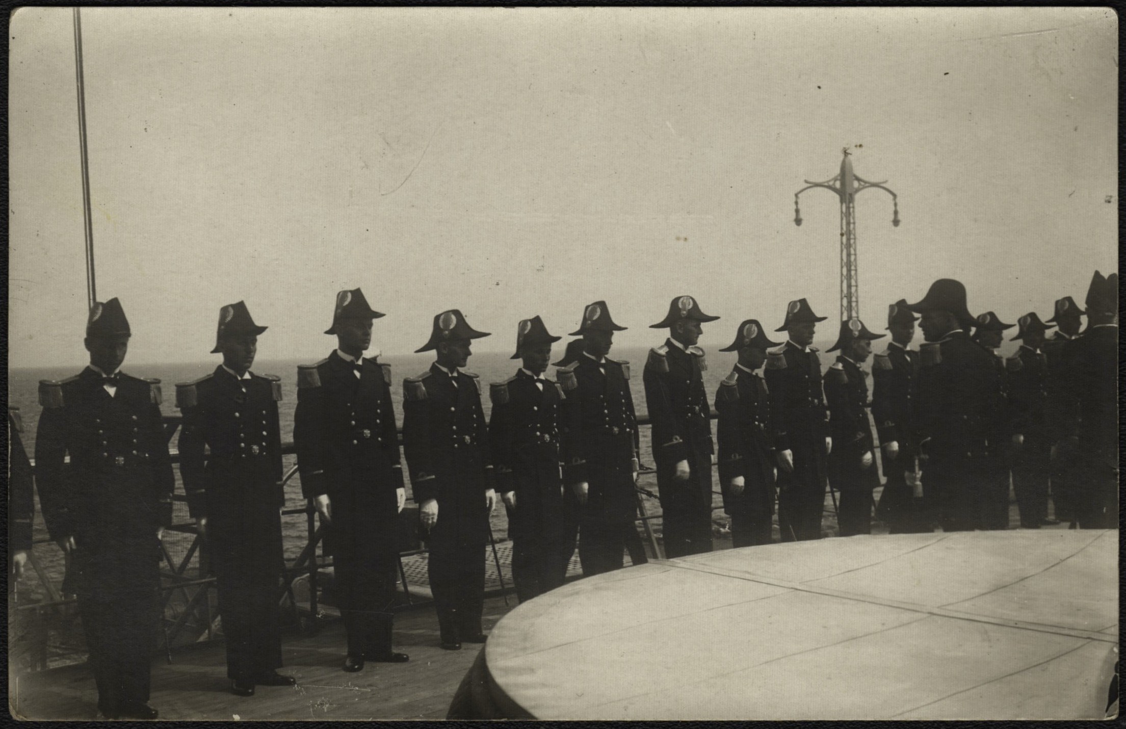 Widoczny m. in. Józef Unrug (1884-1973), dowódca floty Marynarki Wojennej.