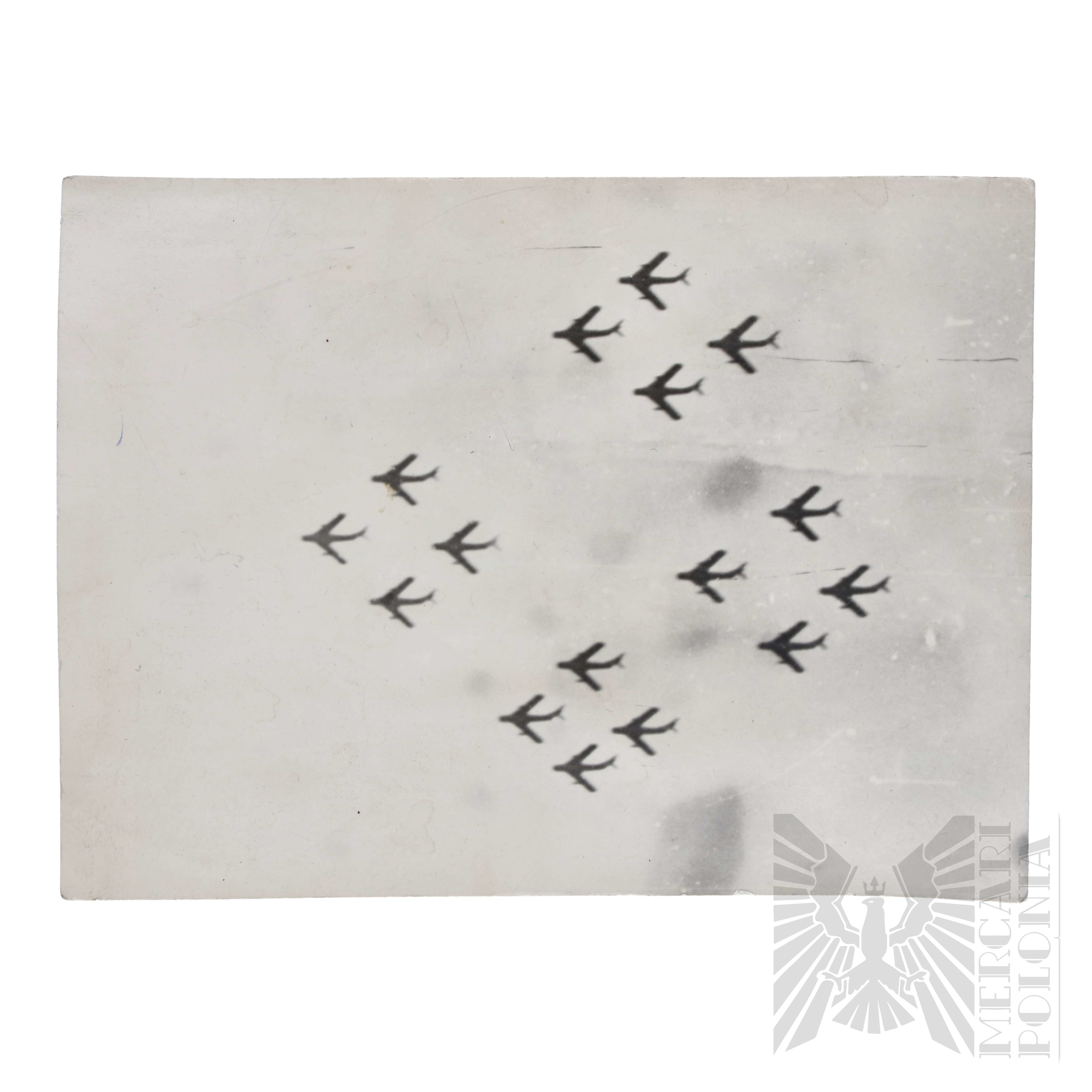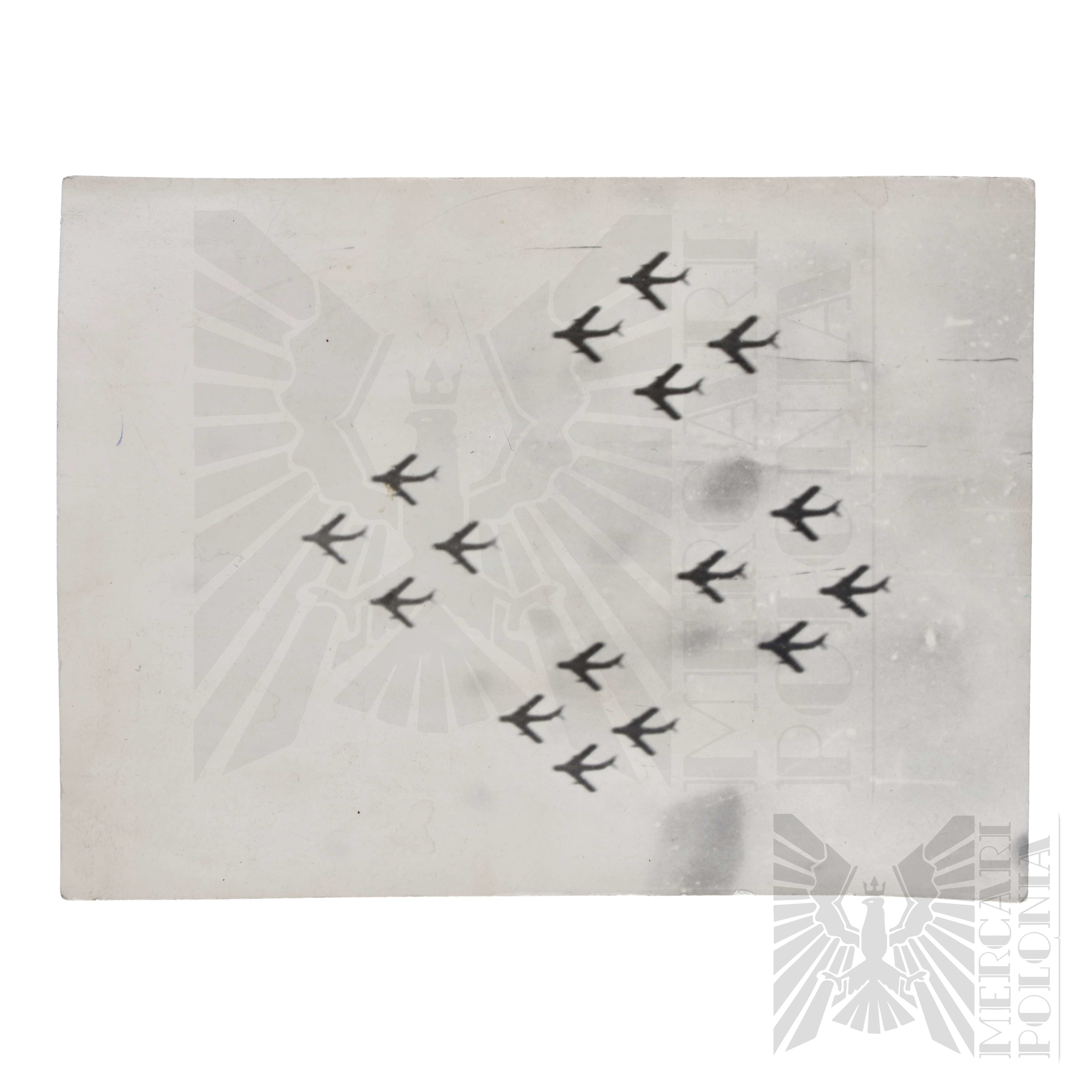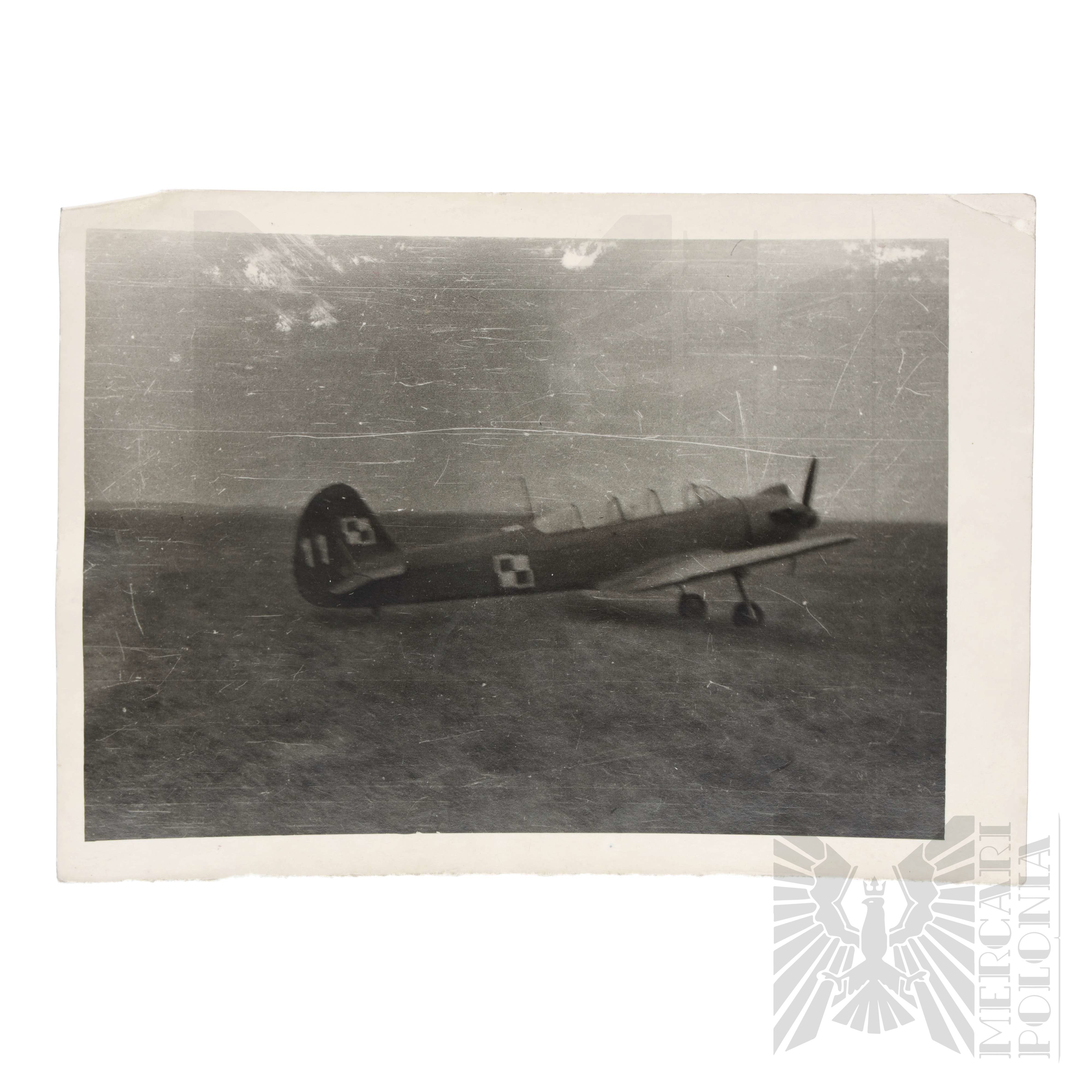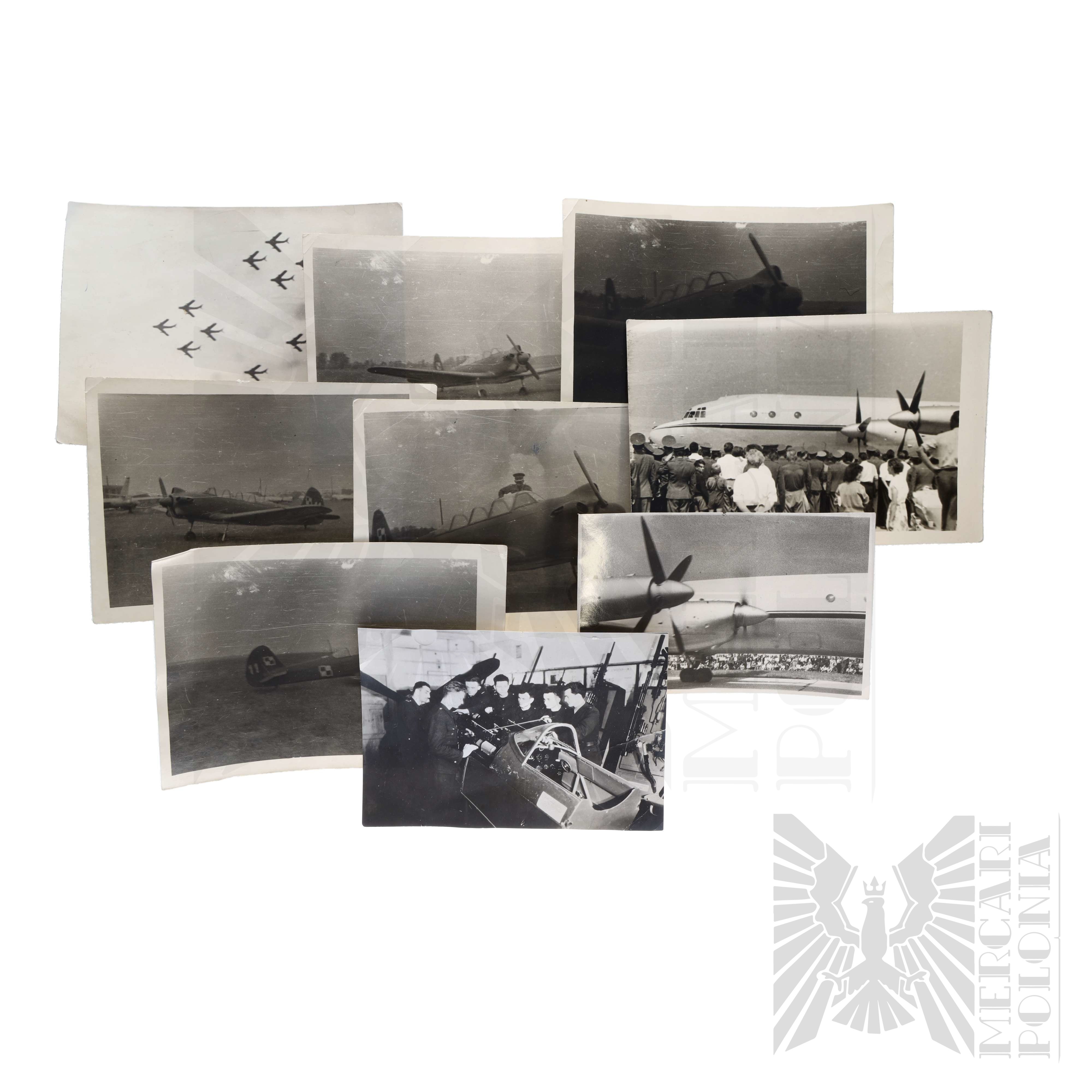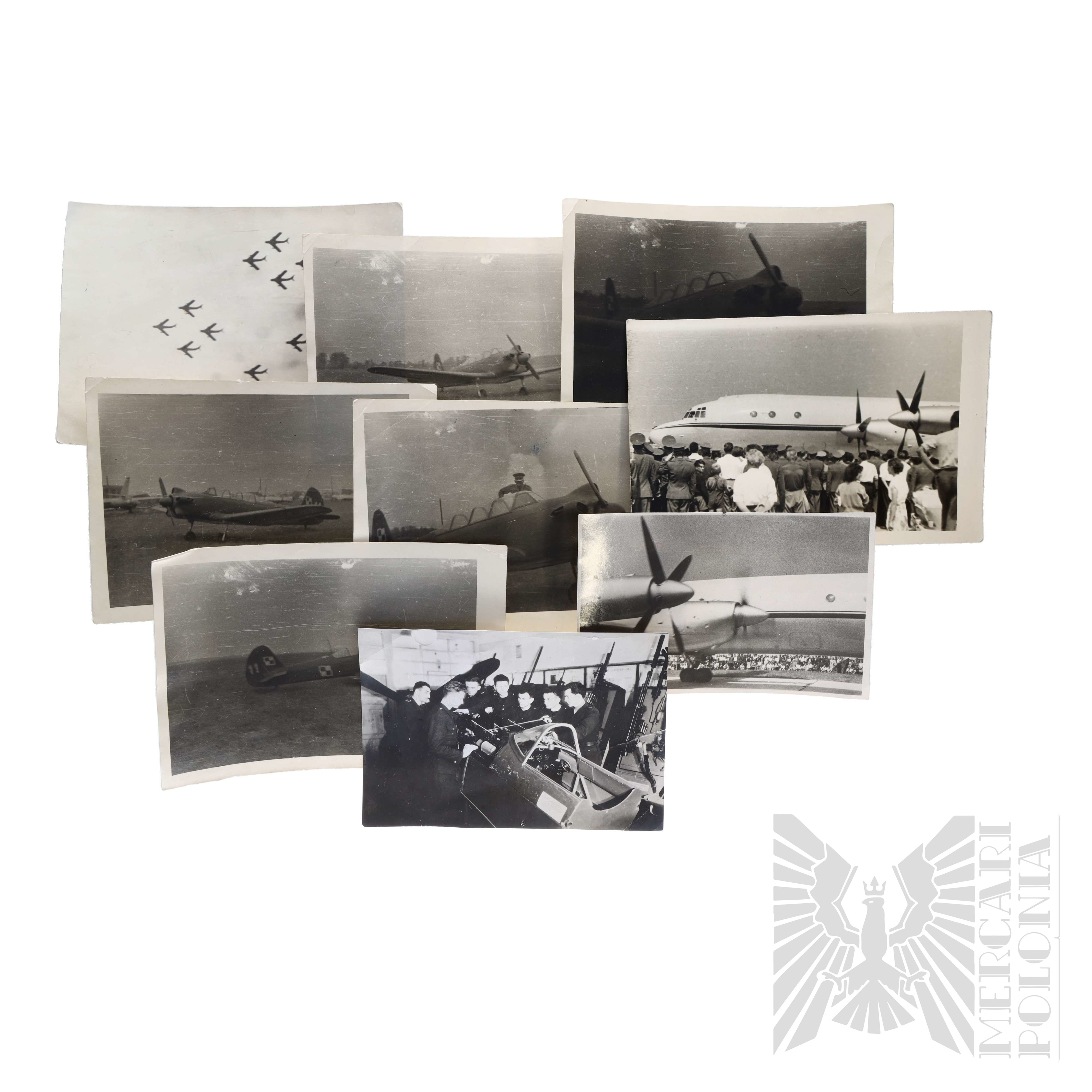 Zestaw opiewający na 9 sztuk zdjęć głównie formatu pocztówkowego, przedstawiające samoloty WP jak i samoloty pasażerskie.