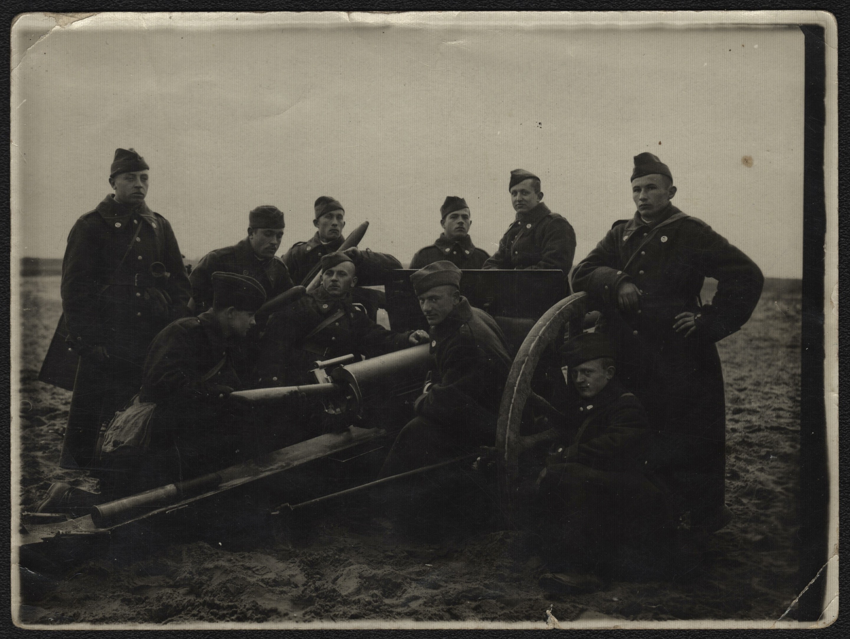 Szkoła Podchorążych Rezerwy Artylerii z Włodzimierza Wołyńskiego] Grupa podchorążych przy obsłudze działa. Czeremoszno, maj 1934