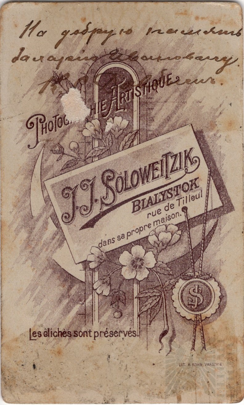 XX w., 1902 r. (?), Białystok - Fotografia Młodego Mężczyzny; Fotograf Józef Sołowiejczyk
