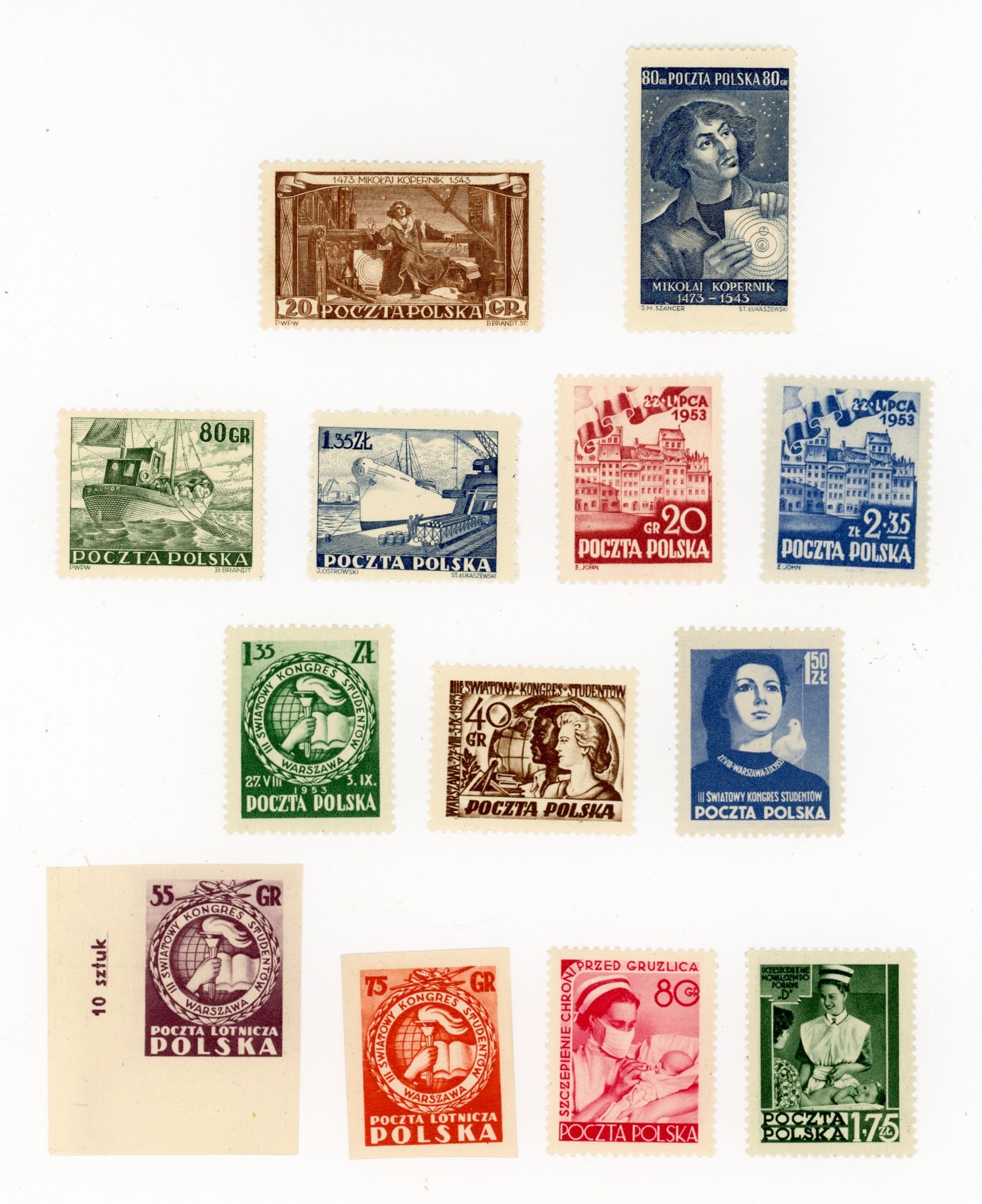 Polska 1953 rok - zestaw 13 znaczków niekasowanych bez podlepek