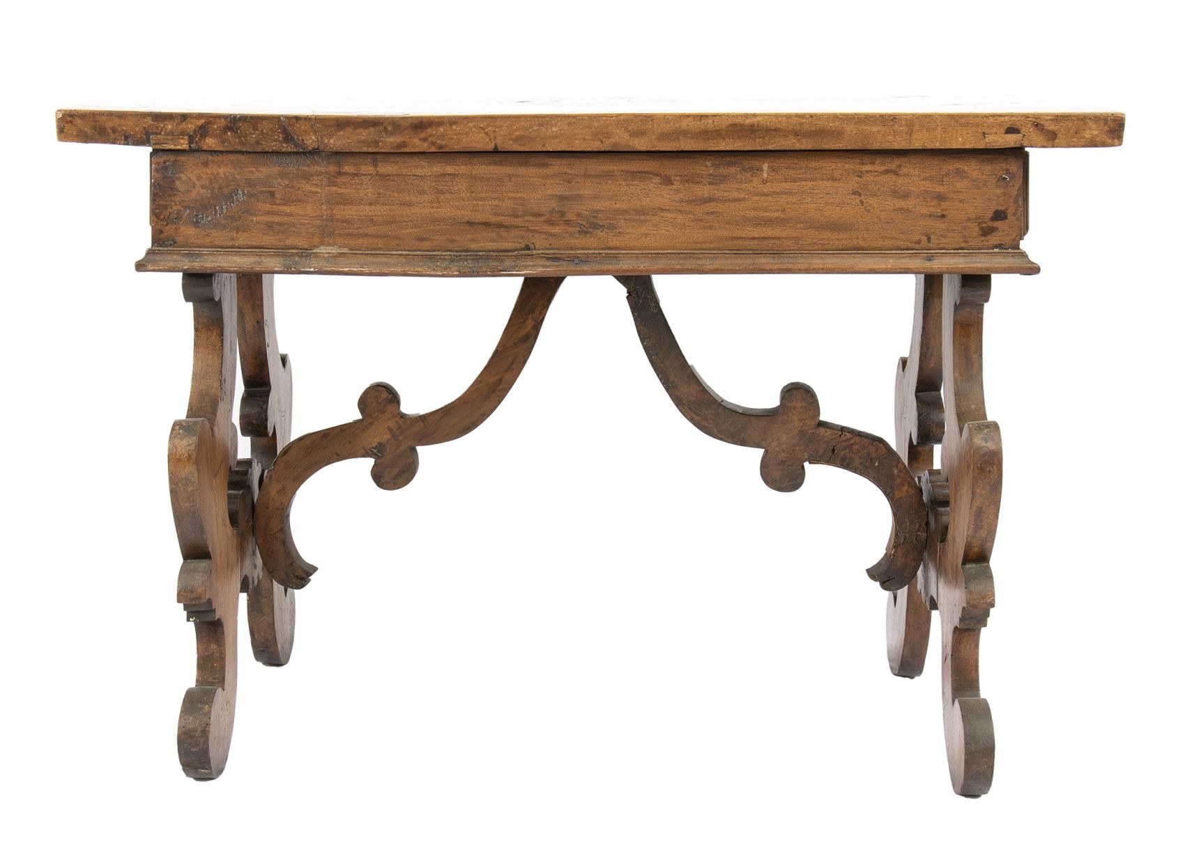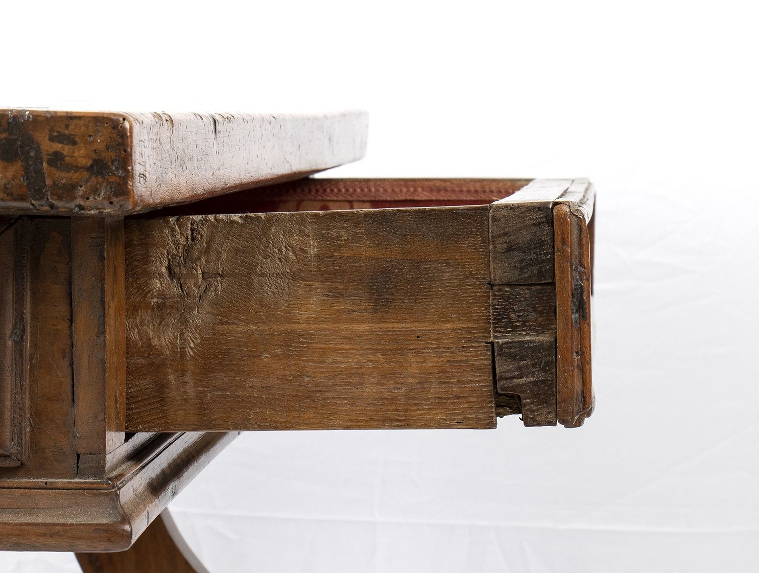 Italian inlaid desk - 18th century, with a so-called 'goat' construction, typical of the Italian area is made of walnut wood and with maple inlays. Height x width x depth: 78.5 x 113 x 56 cm. Item condition grading: *** fair (broken lower crosspiece).