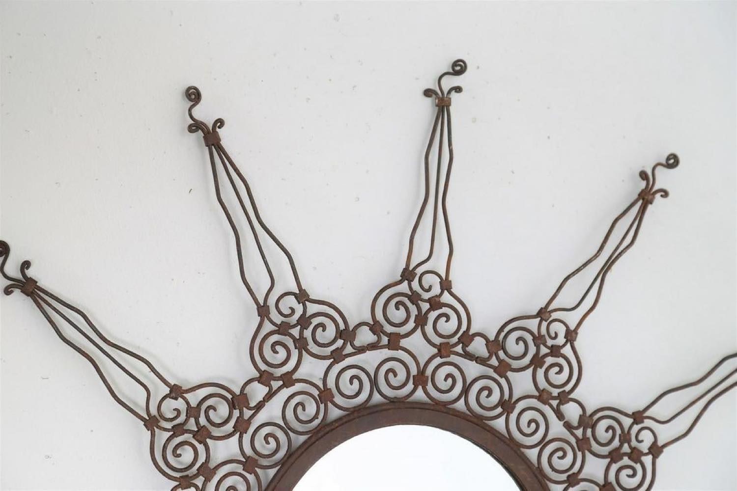 Wall Mirror, Mirror with frame and decorative element in crystal and ironMirror made with decorative elements in crystal and iron in the shape of a sun. Italian manufacture from the 70s.