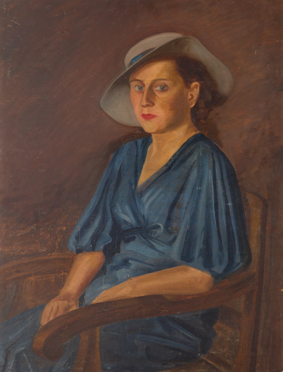 Malarz nieokreślony, polski (XX w.), Portret kobiety w niebieskiej sukni