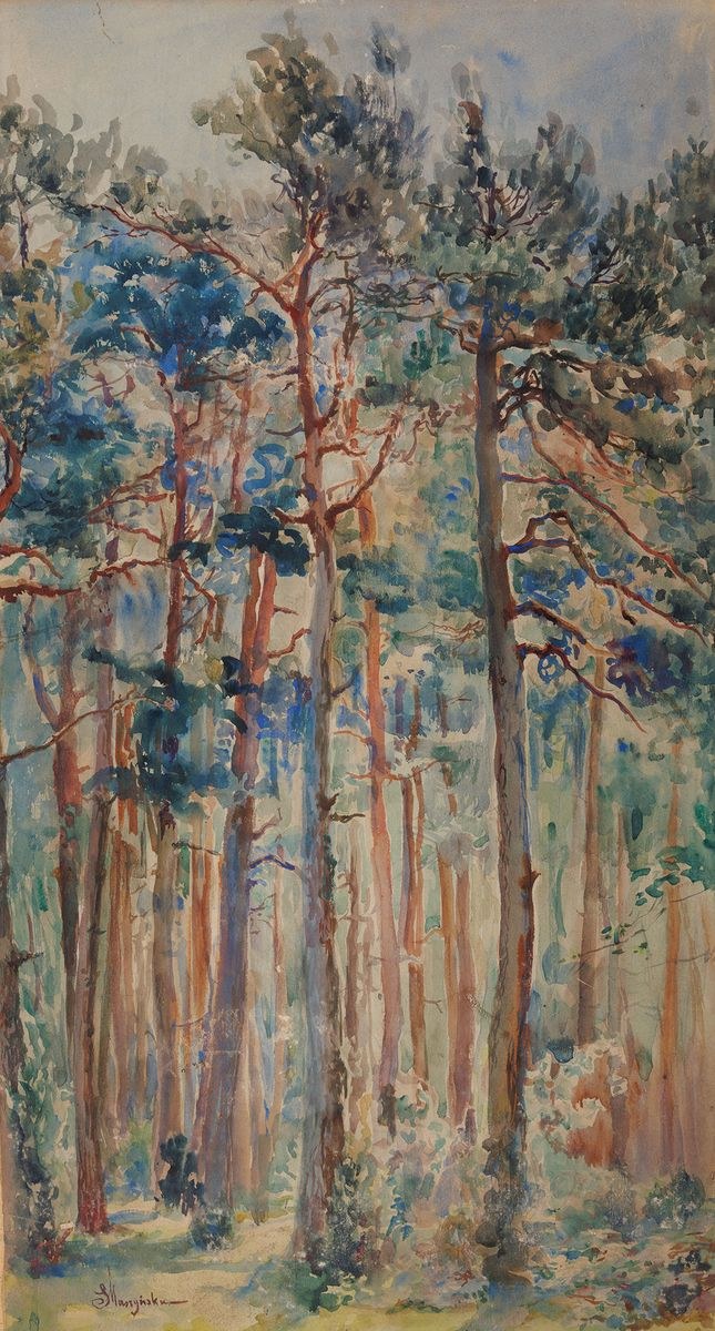 Akwarela, papier naklejony na karton; 63 x 34 cm