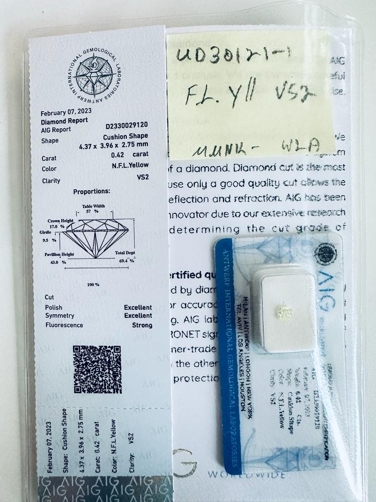 0.42 CARAT NATURAL POLISHED LIGHT YELLOW DIAMOND - VS2 CLARITY - UD30121-1 - AUCTION COMMISSION 25%