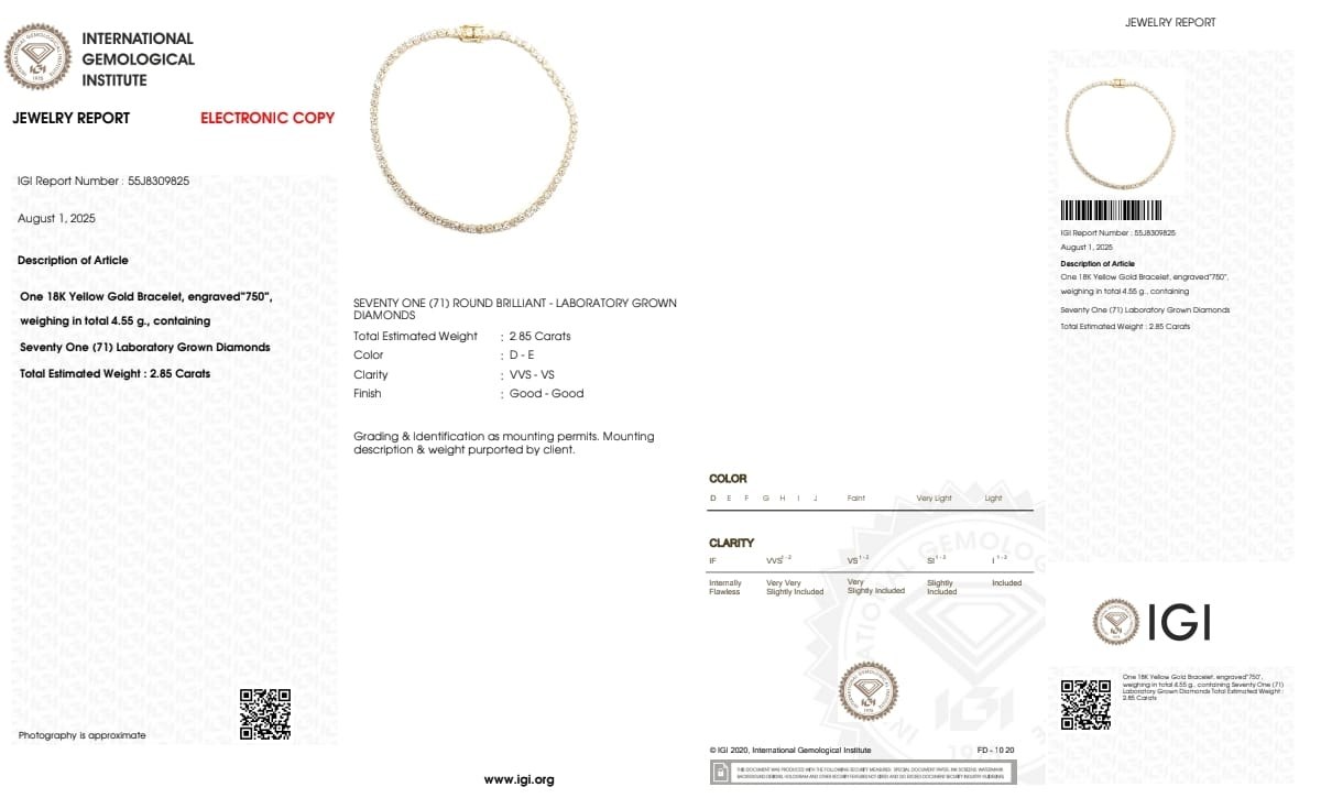 71 LABGROWN DIAMONDS, TOTAL 2.85 CARATS, COLOR D/E, CLARITY VVS–VS, IGI CERTIFICATE