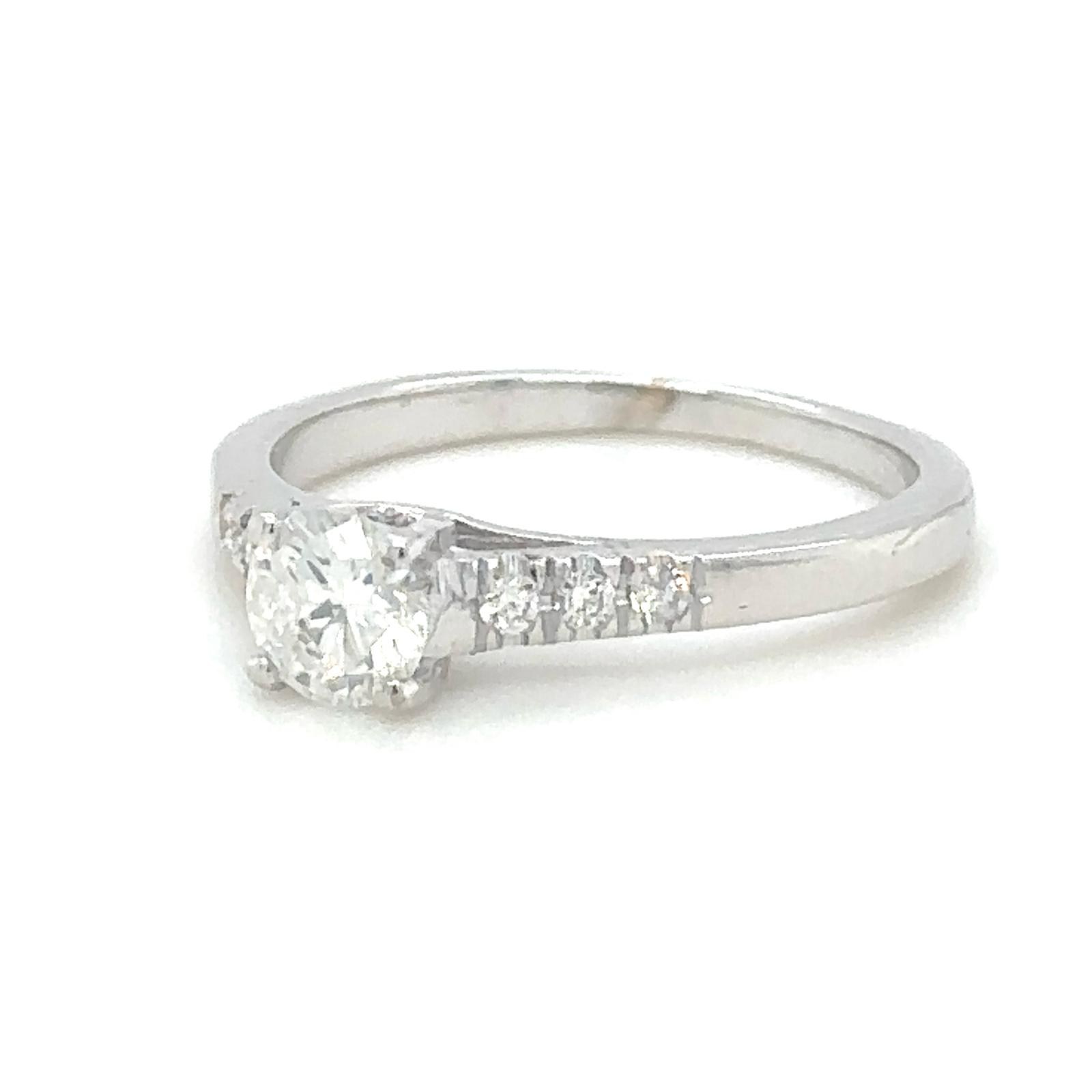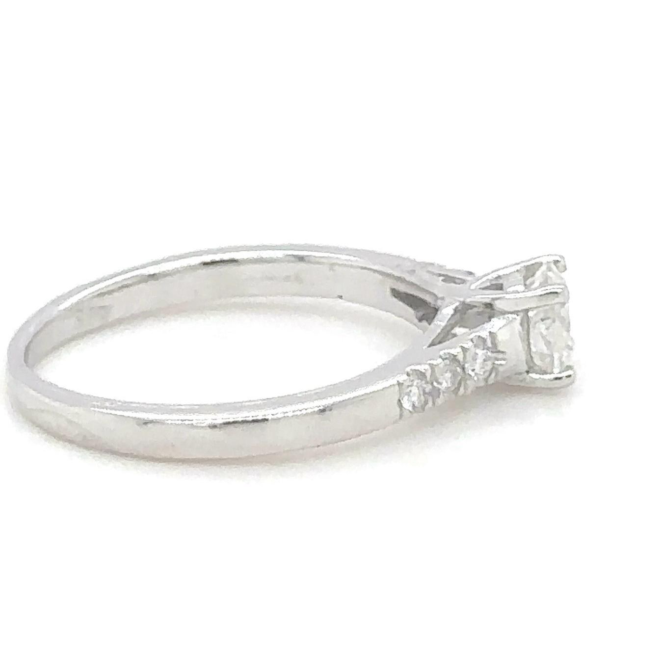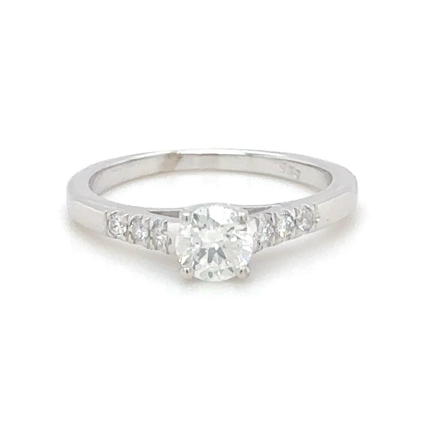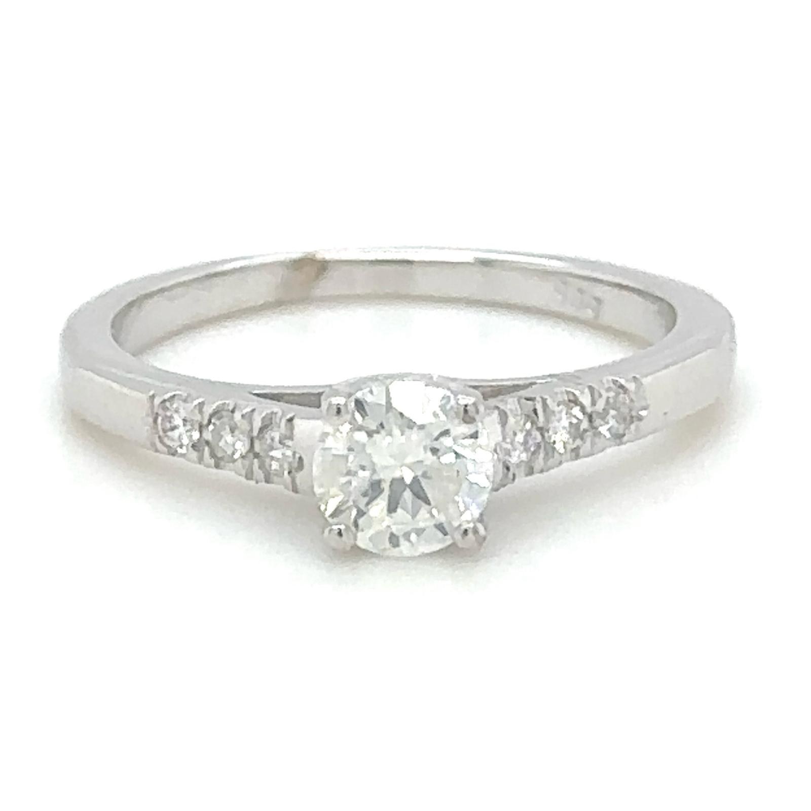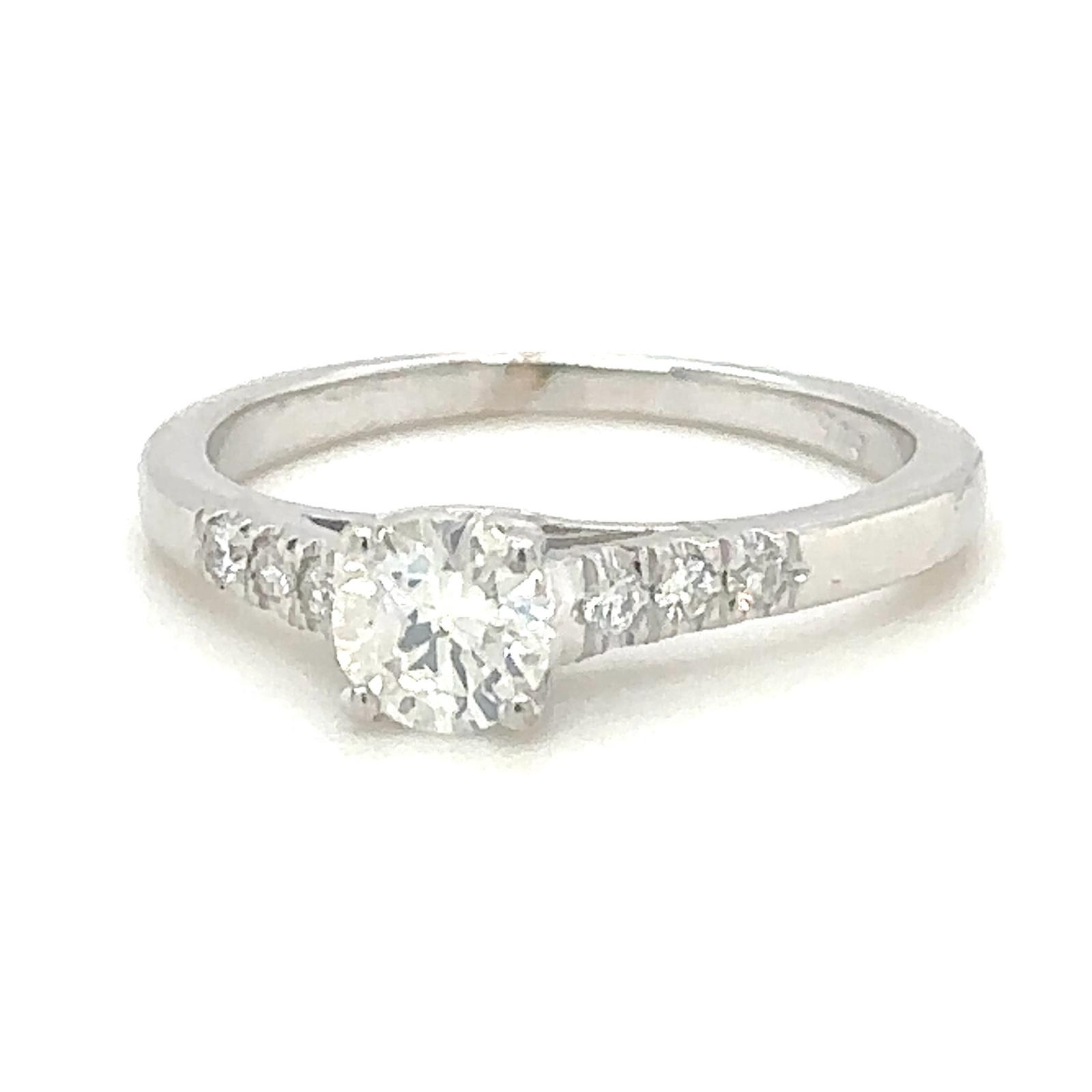 14K WHITE GOLD RING 2.15 GR WITH CENTRAL DIAMOND OF 0.46 CARATS COLOR G CLARITY I1 + SIDE DIAMONDS FOR 0.09 CT COLOR F CLARITY SI1-2 SIZE 6 - GEMOLOGICAL CERTIFICATE ATTACHED - RNG40401 - AUCTION COMMISSION 25%