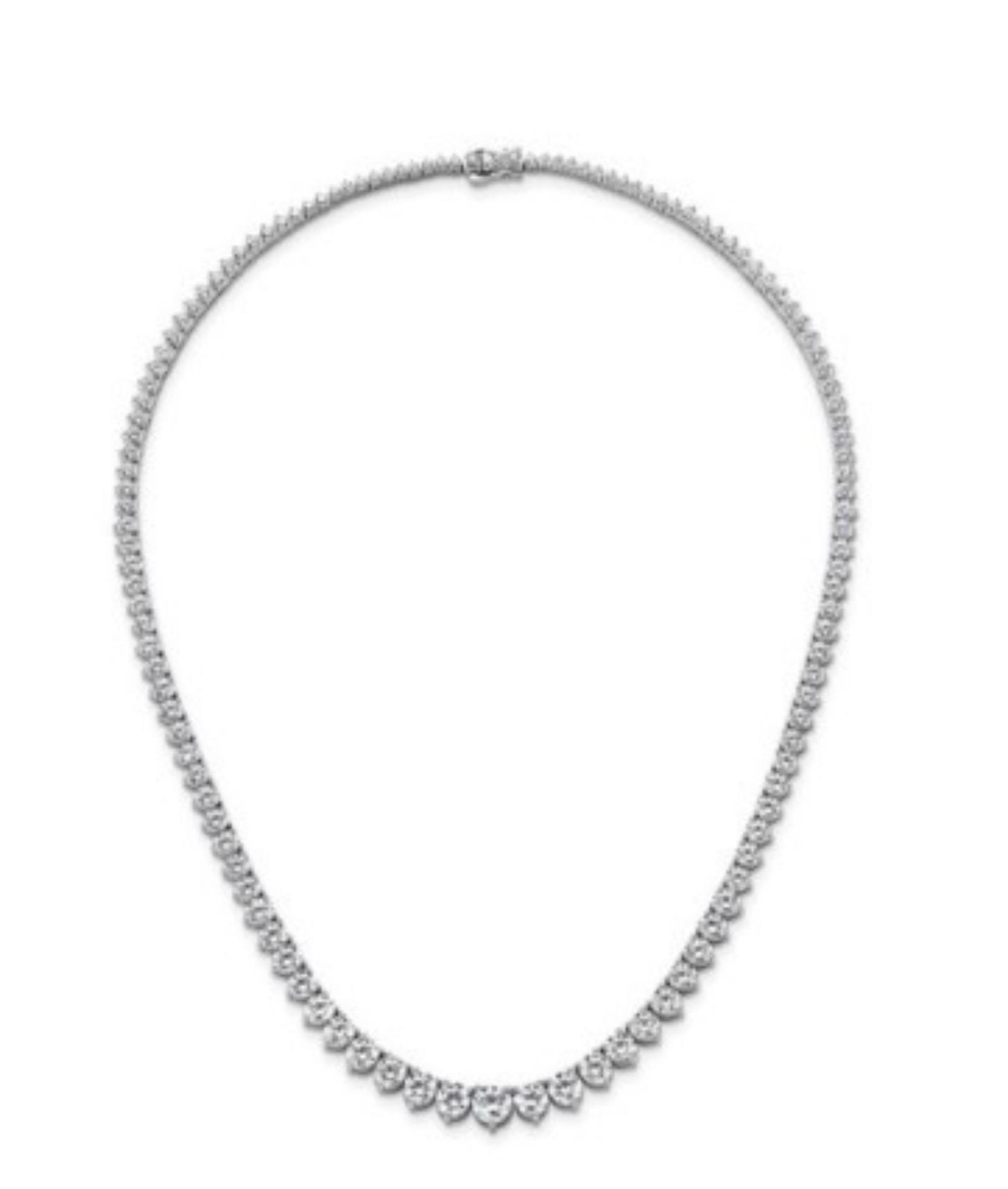 TENNIS-TYPE NECKLACE IN 14K WHITE GOLD WEIGHT 21.5 GRAMS WITH 5.00 CT BRILLIANT-CUT LAB GROWN DIAMONDS IN GRADUATED SETS, COLOR E-F, CLARITY VS - 202/W GRADUATING - AUCTION COMMISSION 25%