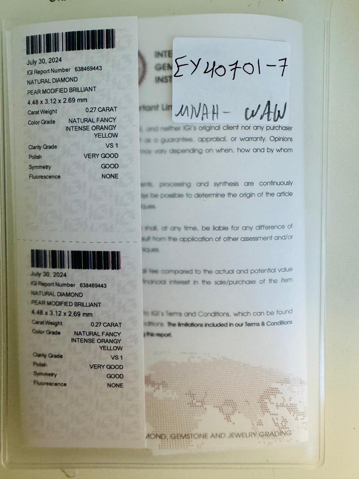 NATURAL POLISHED DIAMOND 0.27 FANCY ORANGE YELLOW - VS1 - IGI - EY40701 - 7