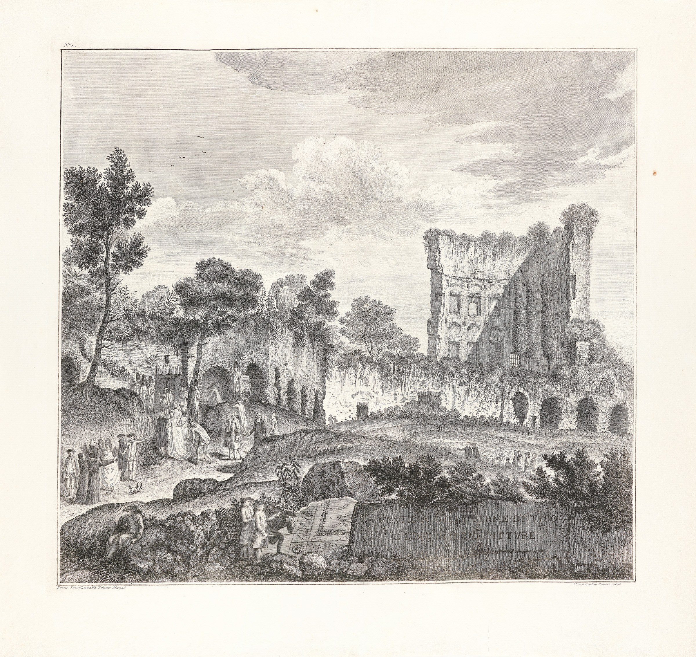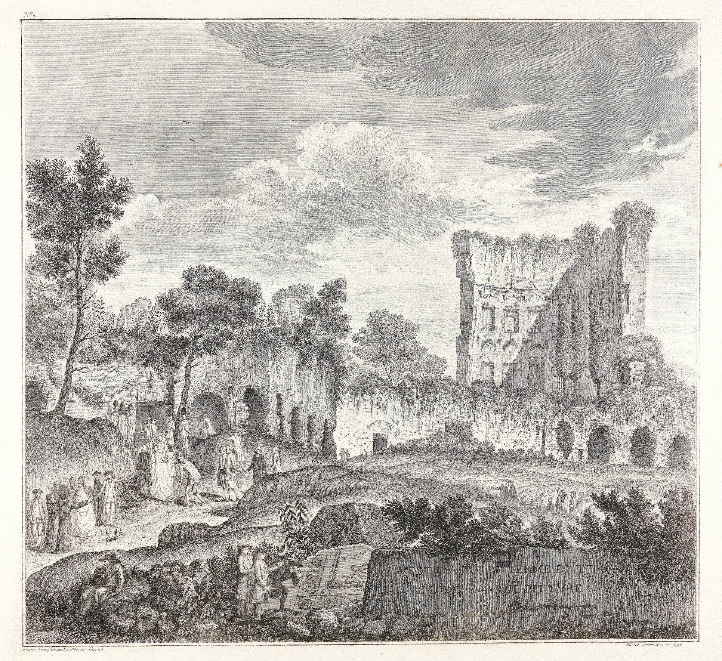Akwaforta; 510 × 550 mm; sygn. pł. l.d. Franc. Smuglewicz Pit. Polacco disegna; p.d.: Marco Corloni Romano pin. Grafika z albumu Vestigia delle terme di Tito e loro interne pitture, Rzym [1776].