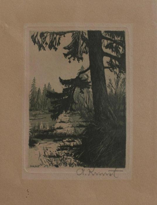 Pejzaż z drzewami sygn.p.d. A. Kunst i na płycie l.d. A. KUNST