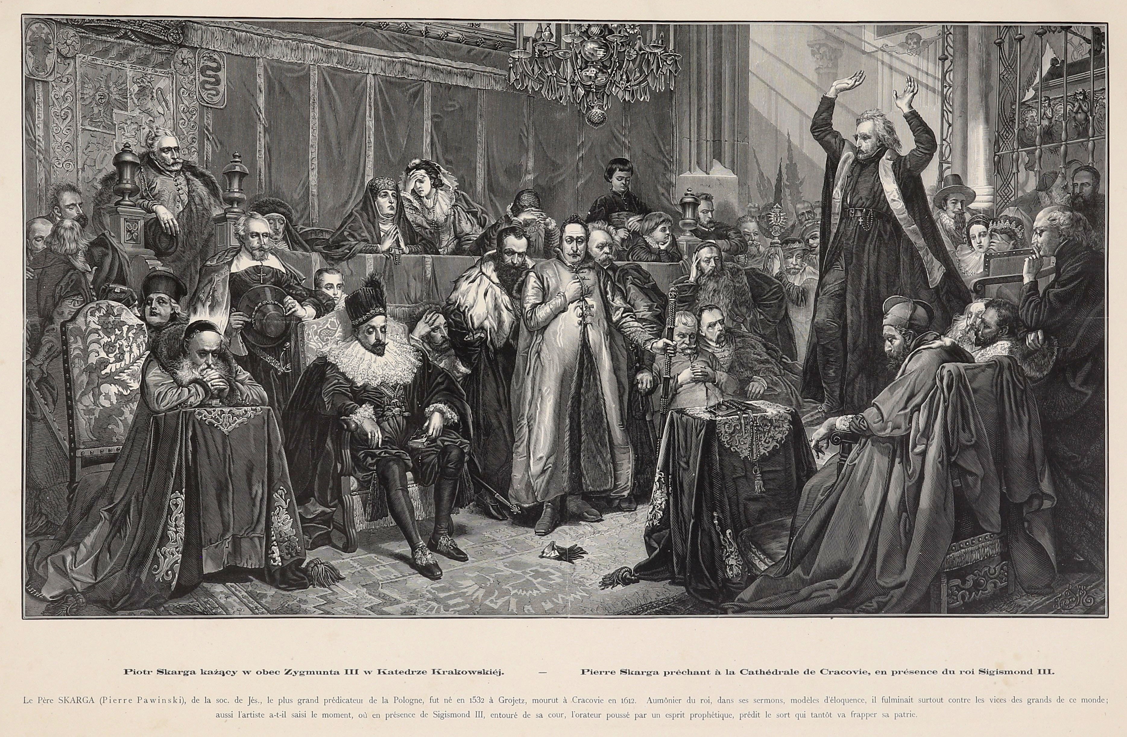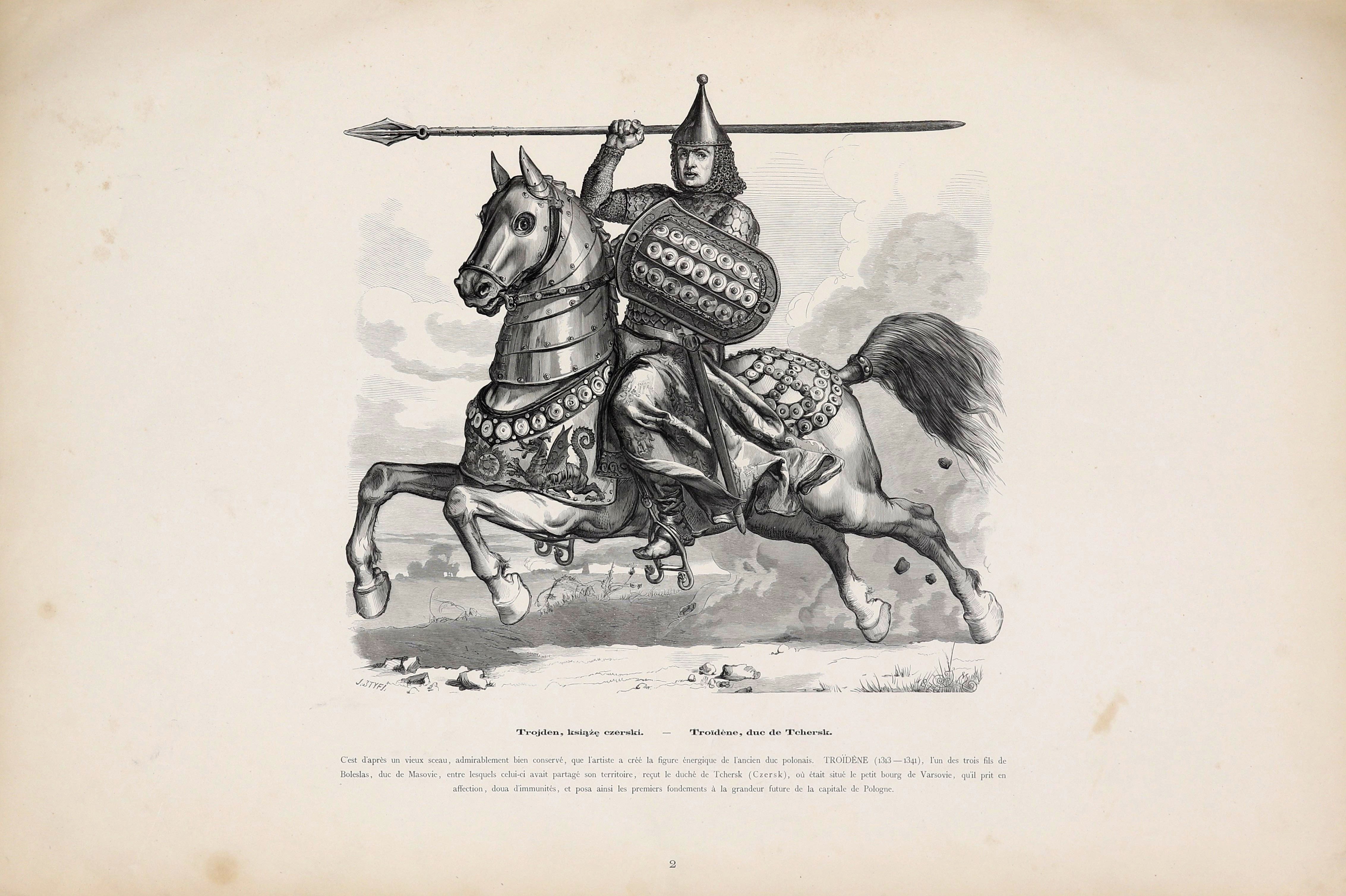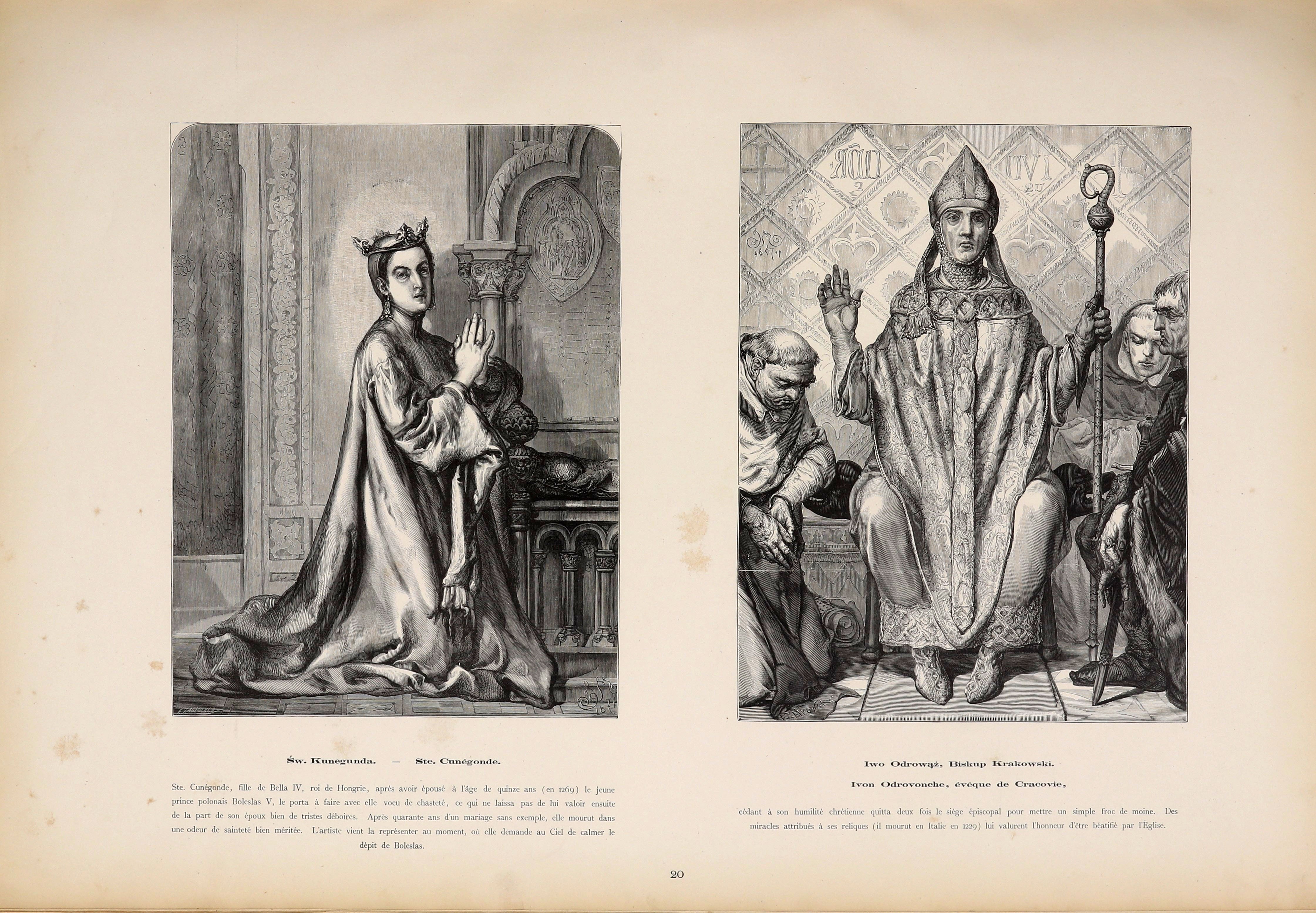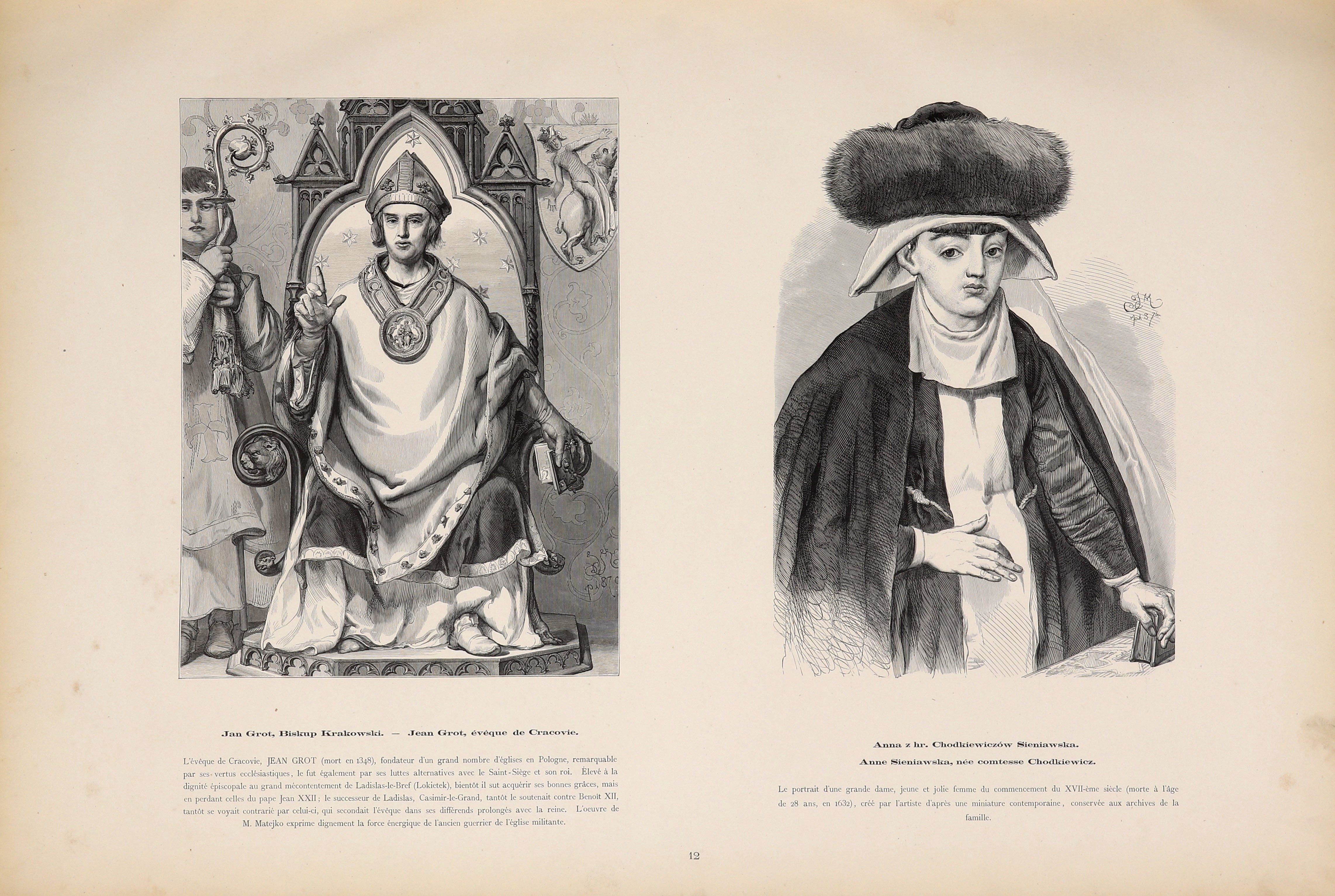 MATEJKO Jan. Album Jana Matejki z tekstem objaśniającym Kazimierza Władysława Wójcickiego, nakład i druk Salomona Lewentala, Warszawa 1873-1876, 49 k. tabl. ryc.; format 460x660 mm. Publikacja ukazywała się w latach 1873-1876 jako pojedyncze zeszyty, które później oprawiono w jedną całość. Album zawiera 49 tablic, w tym jedną nienumerowaną z portretem Matejki; każdą z tablic poprzedza tekst objaśniający autorstwa Kazimierza Władysława Wójcickiego (1807-1912). Tablice drzeworytnicze rytowane przez różnych artystów. Przedstawiają one m.in. Kazanie Skargi, Stańczyka, Rejtana, Batorego pod Pskowem, Unię lubelską, Kopernika, Wernyhorę, Śmierć Przemysława, Iwana Groźnego, a także portrety postaci historycznych oraz ludzi Matejce współczesnych czy widoki budowli i detali architektonicznych, m.in. Krakowa, Lwowa, Żółkwi, Wiśnicza, zamku w Podhorcach etc. Spis ilustracji i autorów rycin znajduje się na końcu albumu. Jan Matejko sam wykonywał rysunki na klockach drzeworytniczych za wyjątkiem dwóch, których autorami byli Julian Maszyński (1847-1901) i Stanisław Witkiewicz (1851-1915). Rytowali je: Piotr Dyamentowski (czynny 1871-1878), Edward Gorazdowski (1843-1901), Gustaw Hähle (artysta niemiecki), Józef Holewiński (1848-1917), Michał Kluczewski (czynny 1869-1875), Kazimierz Krzyżanowski (czynny 1860-1878), Aleksander T. Regulski (1839-1884), Julian Schübeler (czynny 1865-1889), Jan Styfi (1839-1921), Andrzej Zajkowski (1851-1914), Franciszek Szymborski (?-1872), Feliks Zabłocki (1846-1874). Twarda oprawa, tłoczone ornamenty i napisy., st. bdb.; EFEKTOWNY, KOMPLETNY EGZEMPLARZ.
