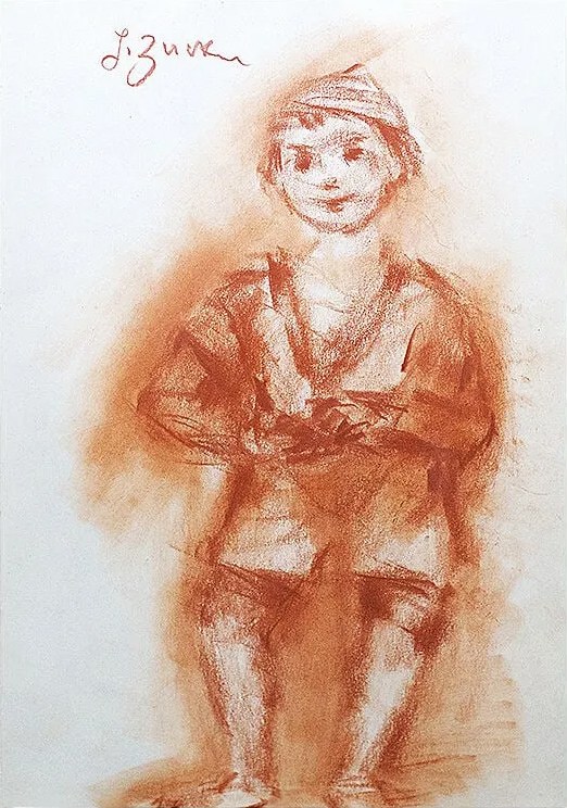 Technika: Rysunek sangwiną na papierze.