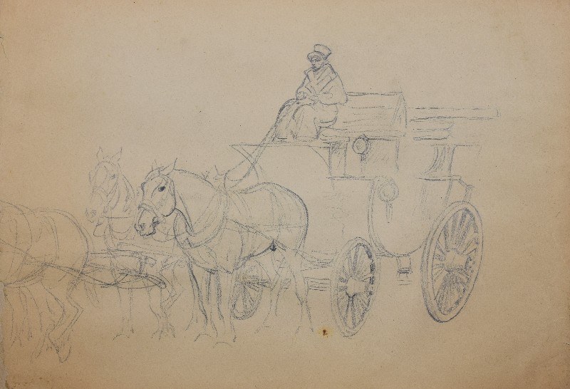 ołówek, papier naklejony na karton; 28,5 x 40 cm.