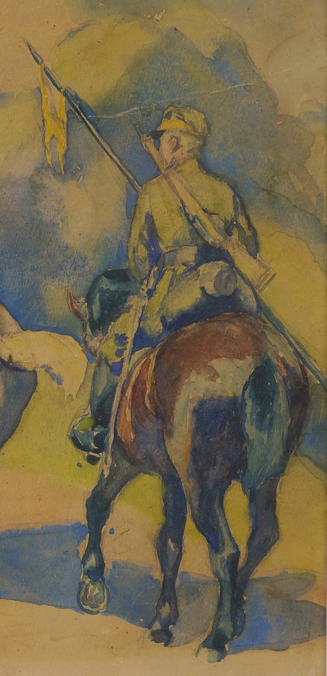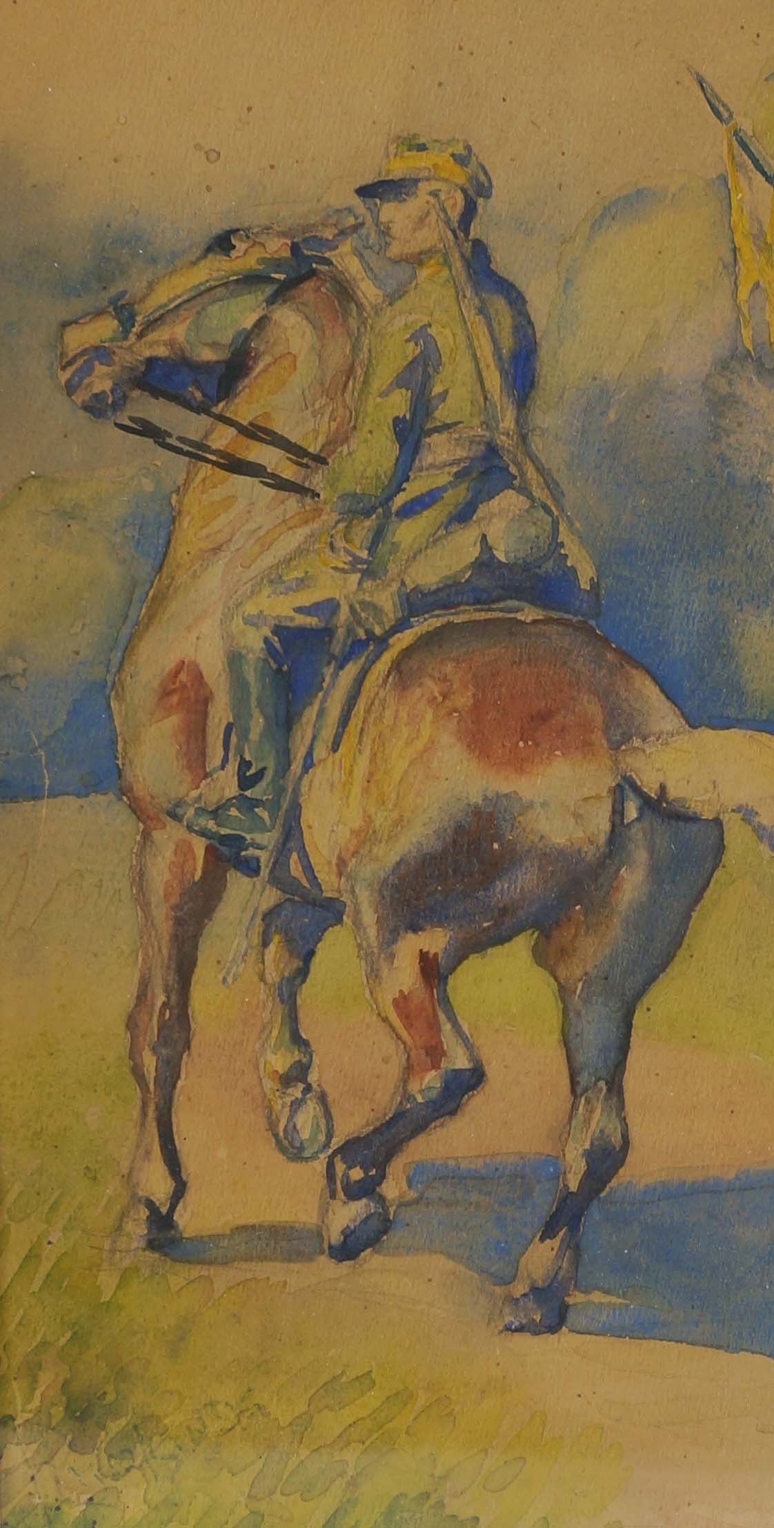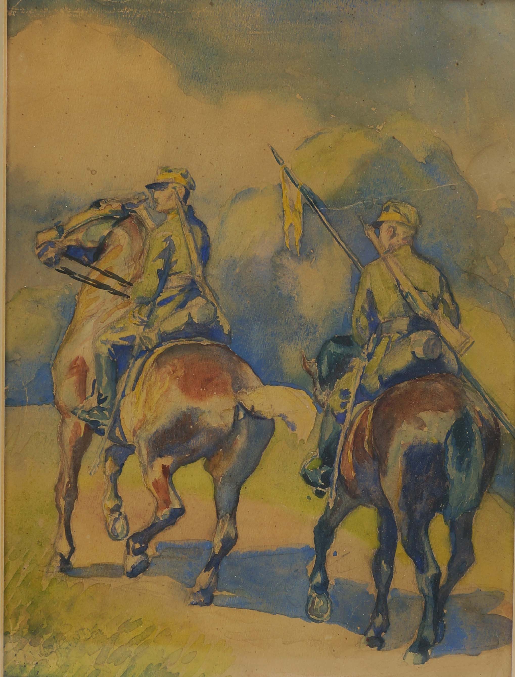 1 Pułk Ułanów Jazłowieckich na patrolu , akwarela , sygnowana Zdzisław Ruszkowski [1907 - 1991], f. 20x27cm w świetle passe-partout, 28x36cm [rama]