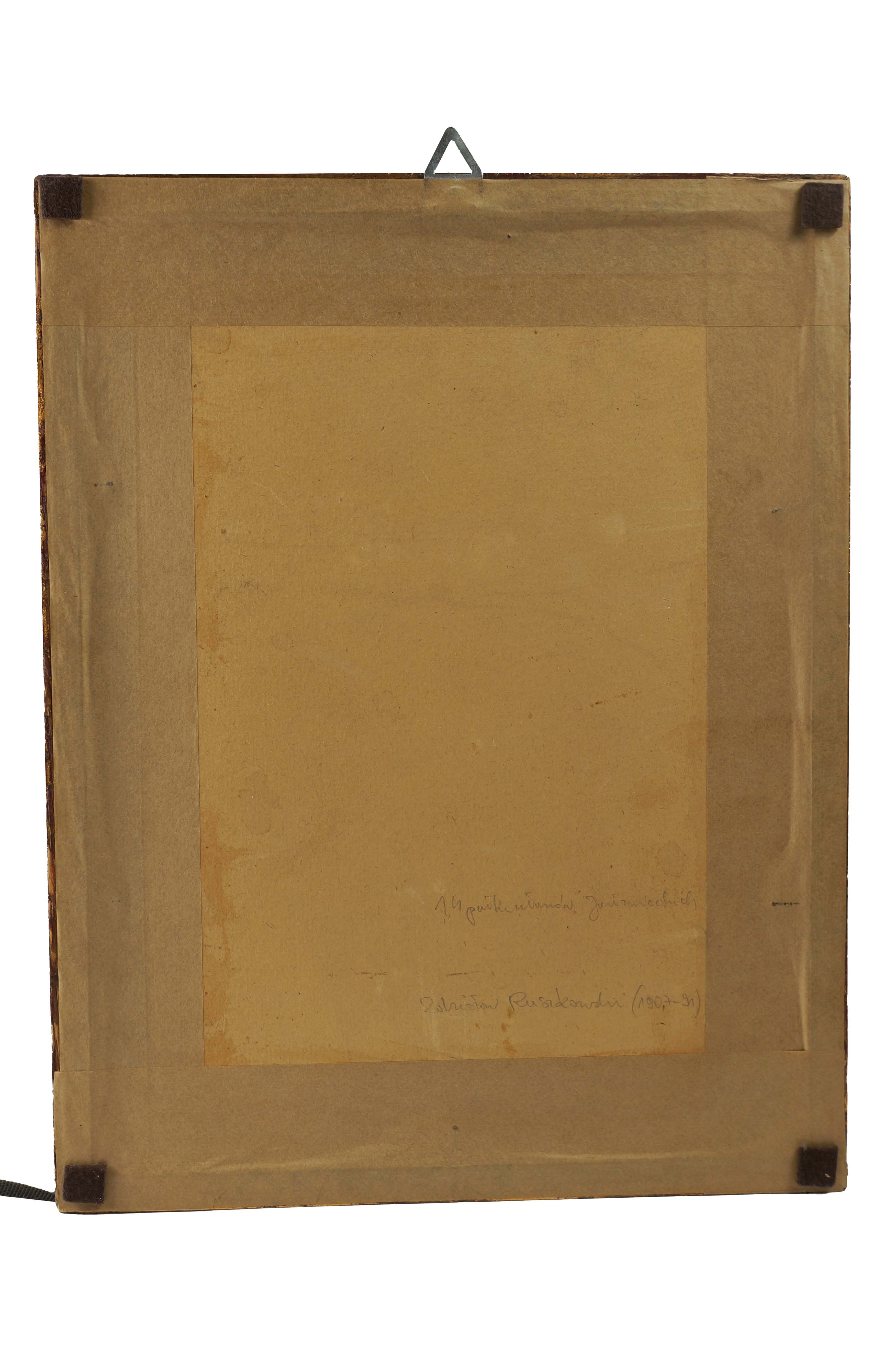 stan bardzo dobry, akwarela oprawiona w złoconą ramę, za szkłem