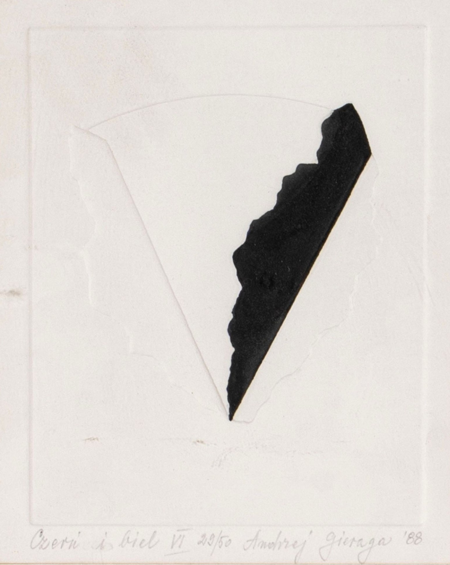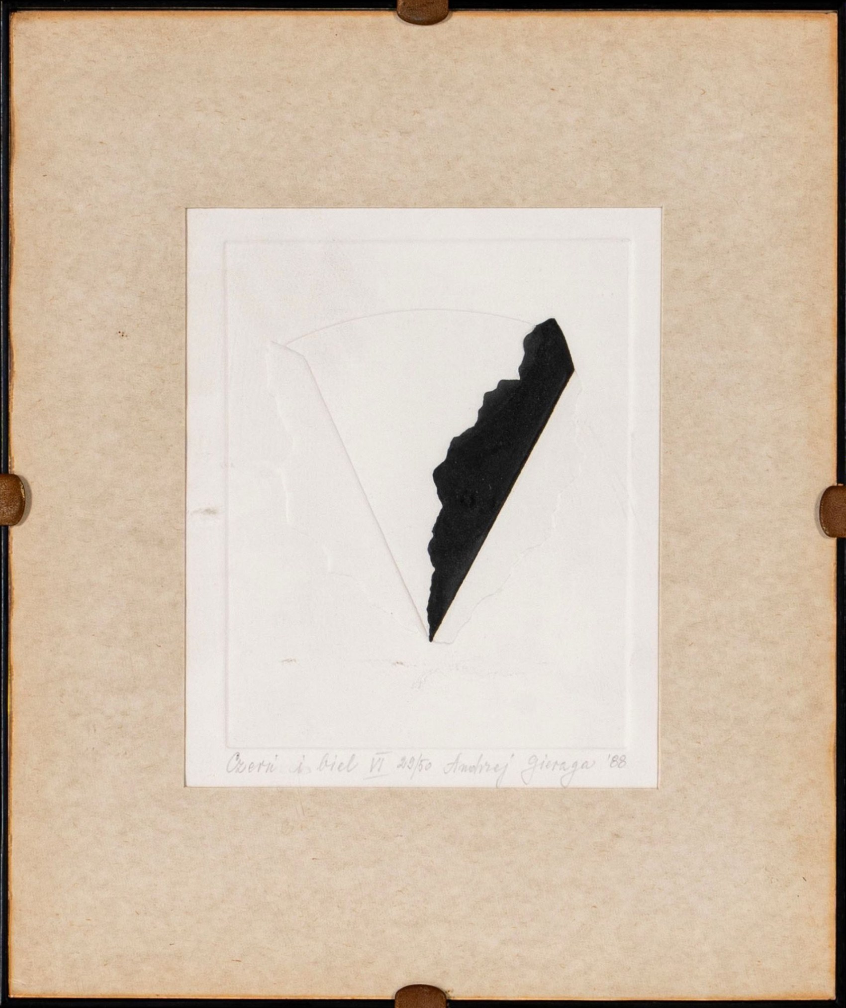 sygn. dat. i opisany u dołu: Czerń i biel VI, 29/50, Andrzej Gieraga ’88 (ołówkiem).