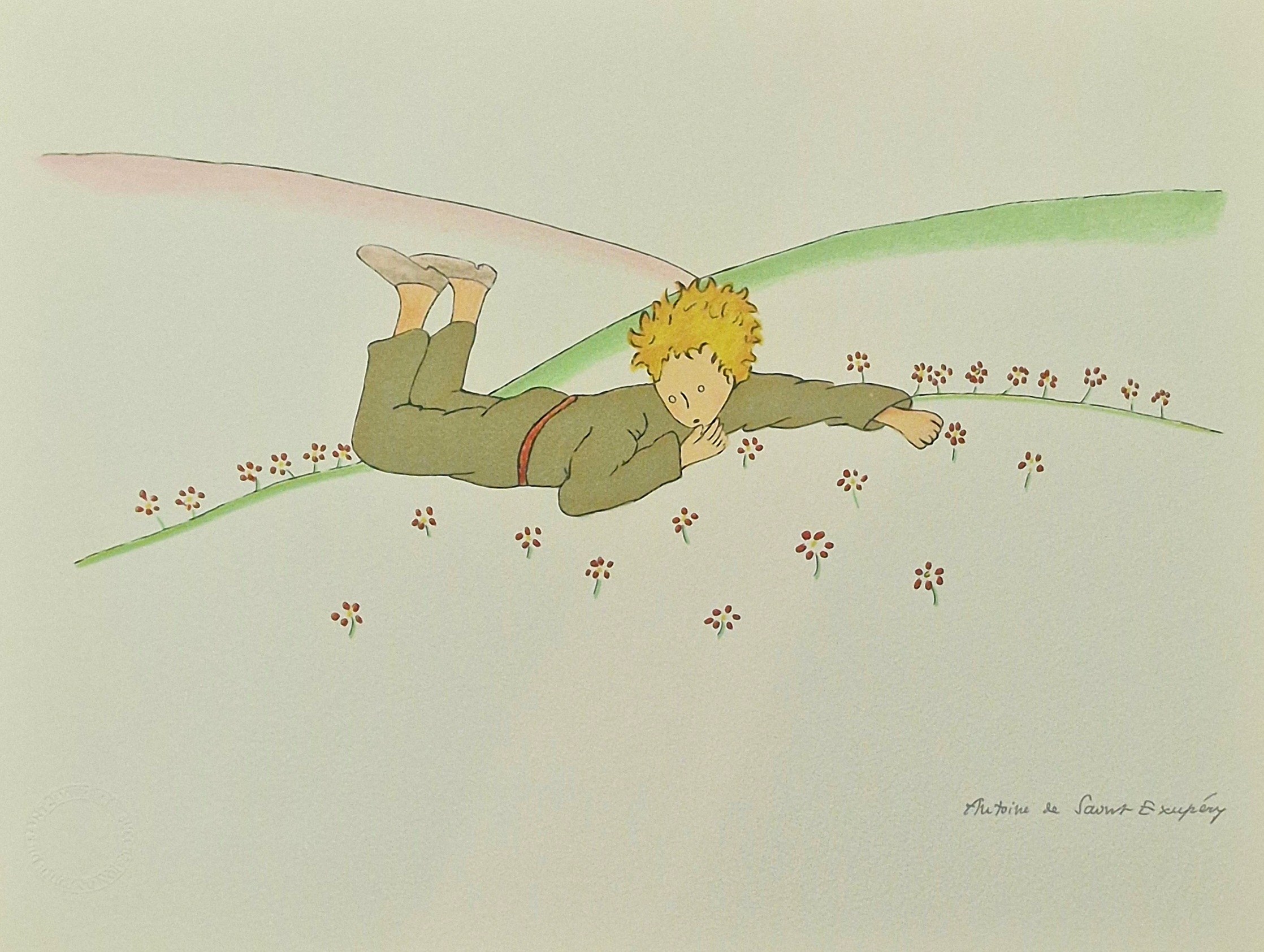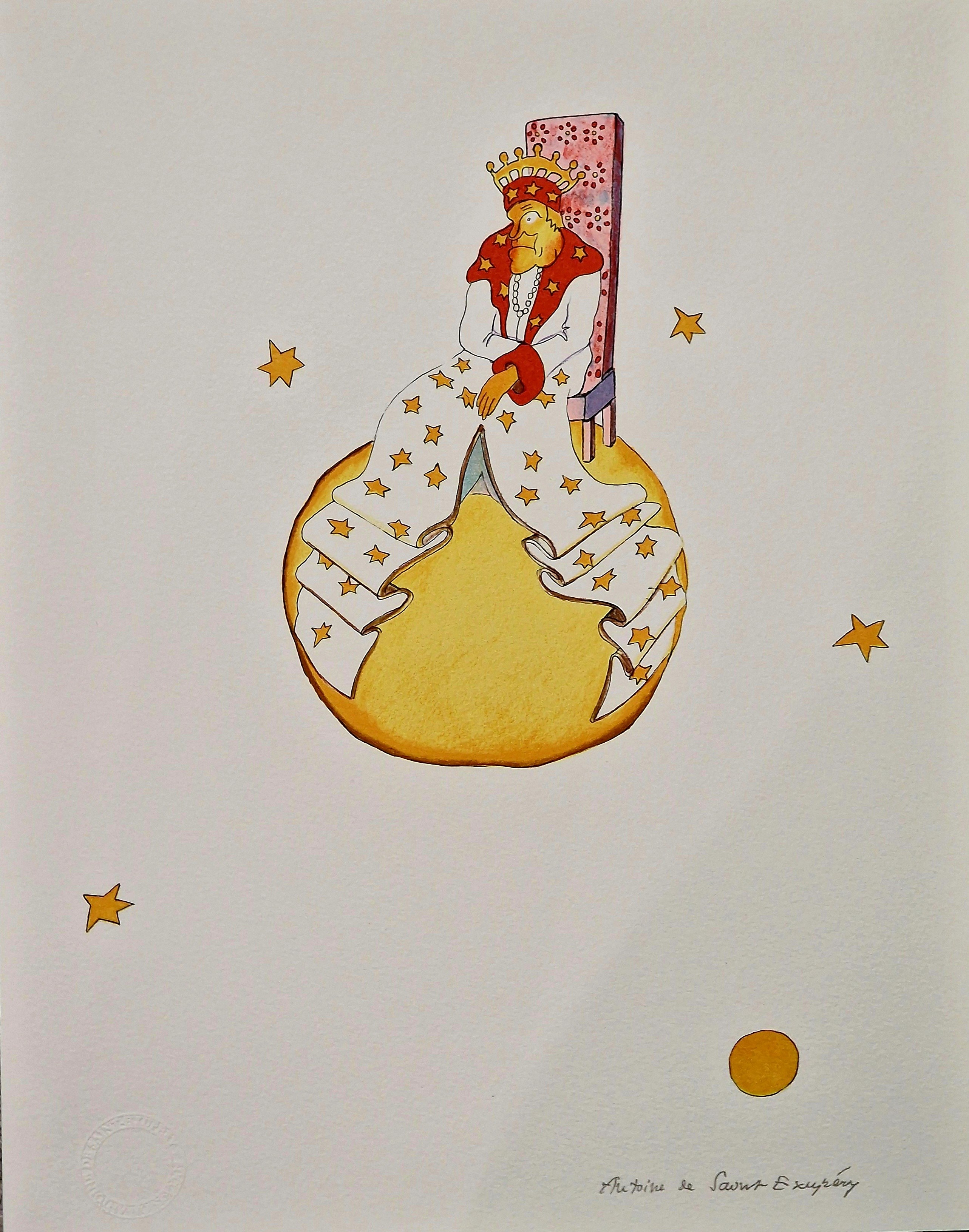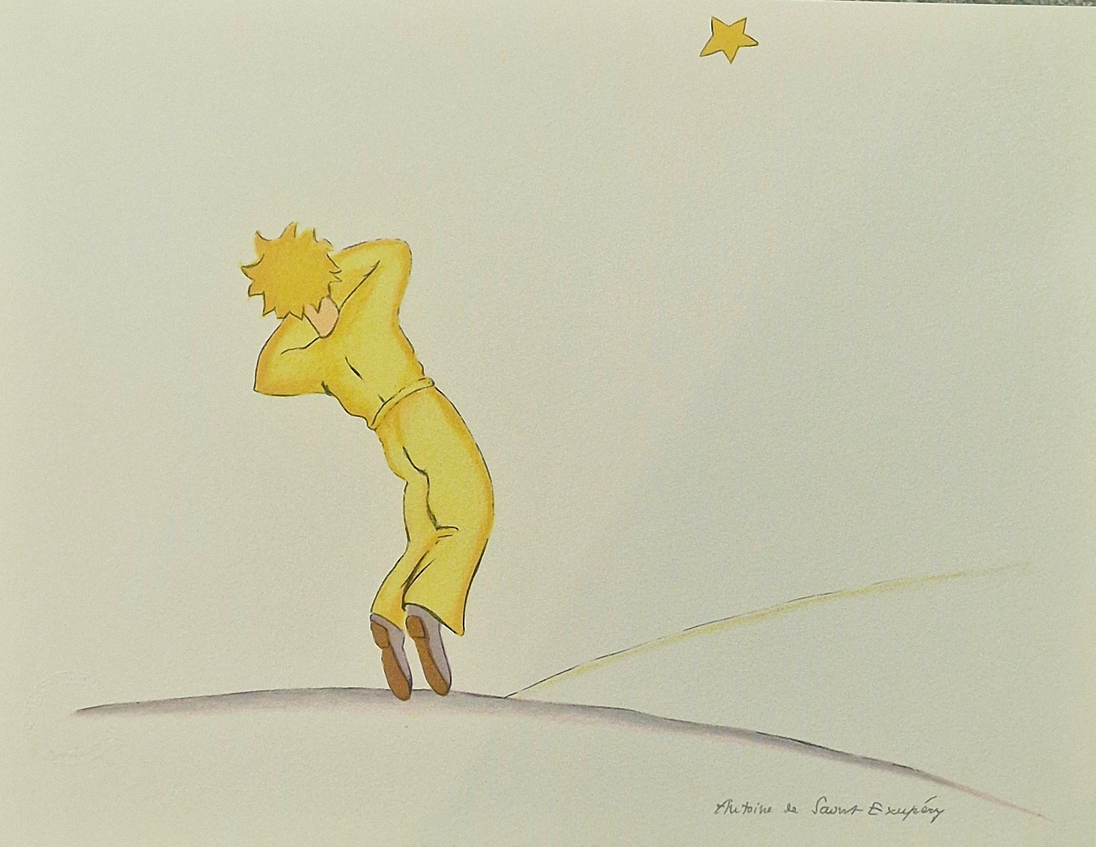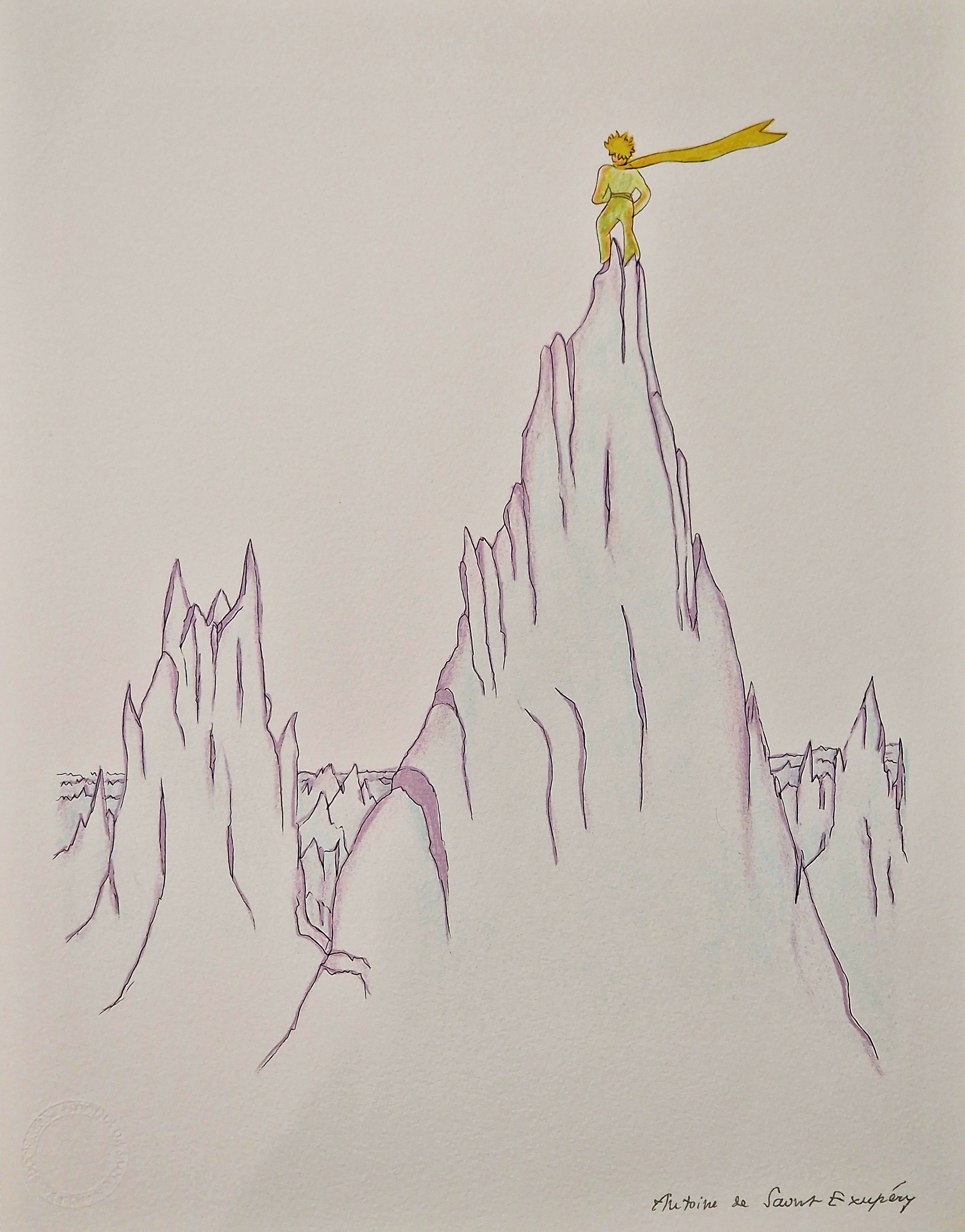 Litografie barwne, papier welinowy Arches ze znakiem wodnym ; 40 x 30 cm, faksymile podpisu autora p.d., sucha pieczęć licencyjna l.d.: „SUCCESSION ANTOINE DE SAINT-EXUPERY”. Do zestawu załączona książka wyd.2024,