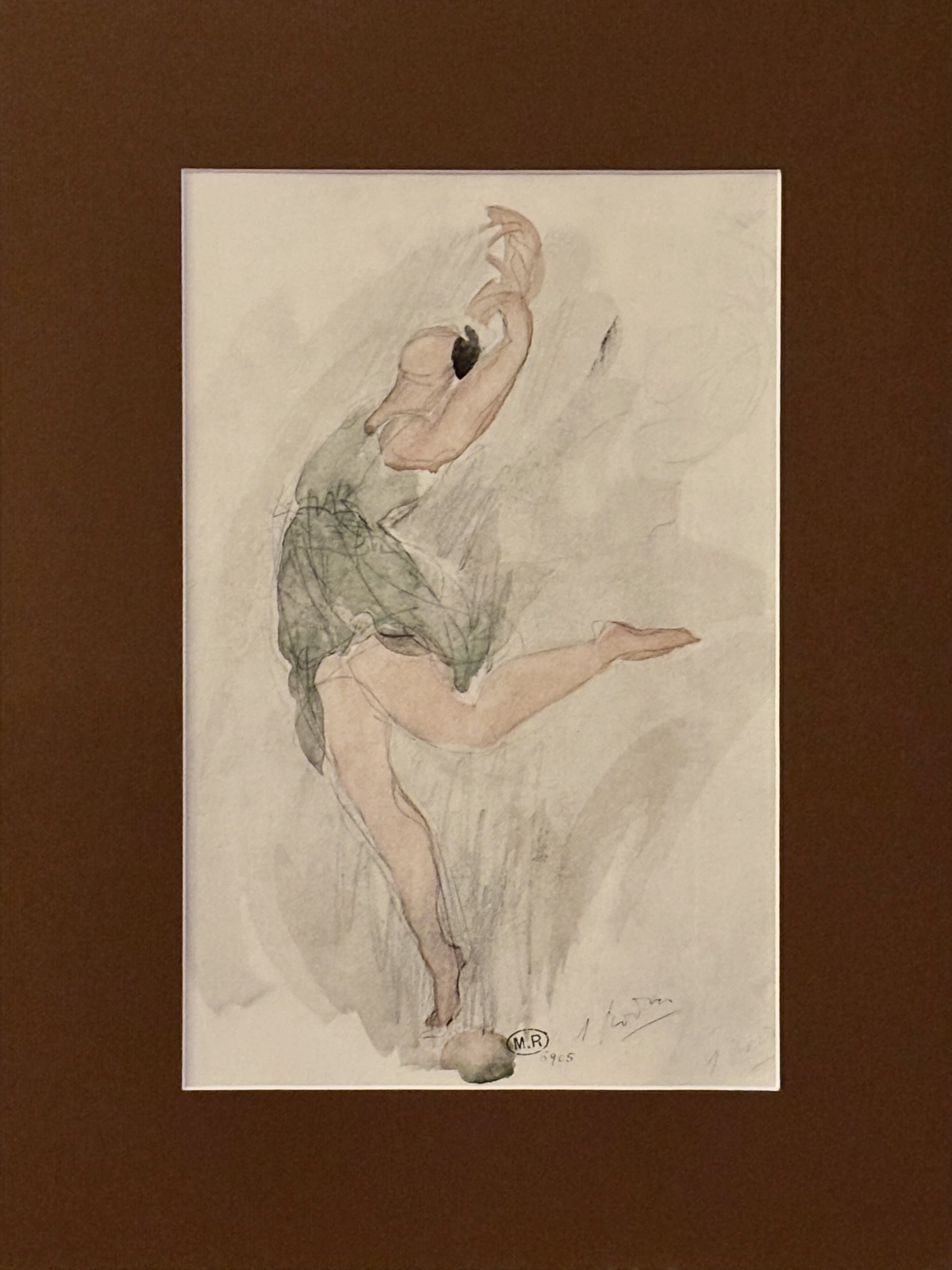 Litografia, pochoir akwarelą, papier 28 x 18 cm w świetle passe – partout o wym. 39 x 29 cm; sygn. na płycie p.d. ; edycja 600 nie numerowanych egzemplarzy; druk: Dreux-Barry studio ; wydawca: Bibliothèque des Arts pod kontrolą Muzeum Rodina w Paryżu przy rue de Varenne 79. Pieczęć museum “M.R. oraz Nr. Inw. “6905” p.d.