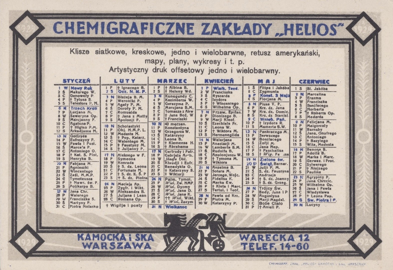 Chemigraficzne Zakłady "Helios". Kamocka i Ska Warszawa. Druk reklamowy [B. d. wyd.]