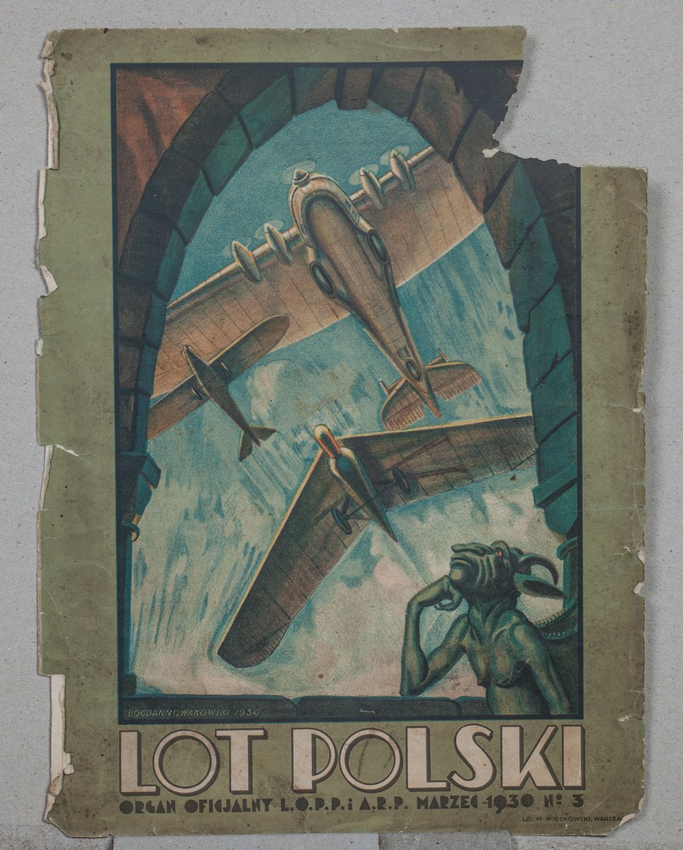 Litografia barwna sygnowana na kamieniu: "BOGDANNOWAKOWSKI 1930", odbita w litografiarni M. Więckowskiego w Warszawie, nakładem Ligi Ochrony Powietrznej i Przeciwgazowej. Stan zachowania słaby (wymagana konserwacja - uzupełnienie prawego górnego rogu)