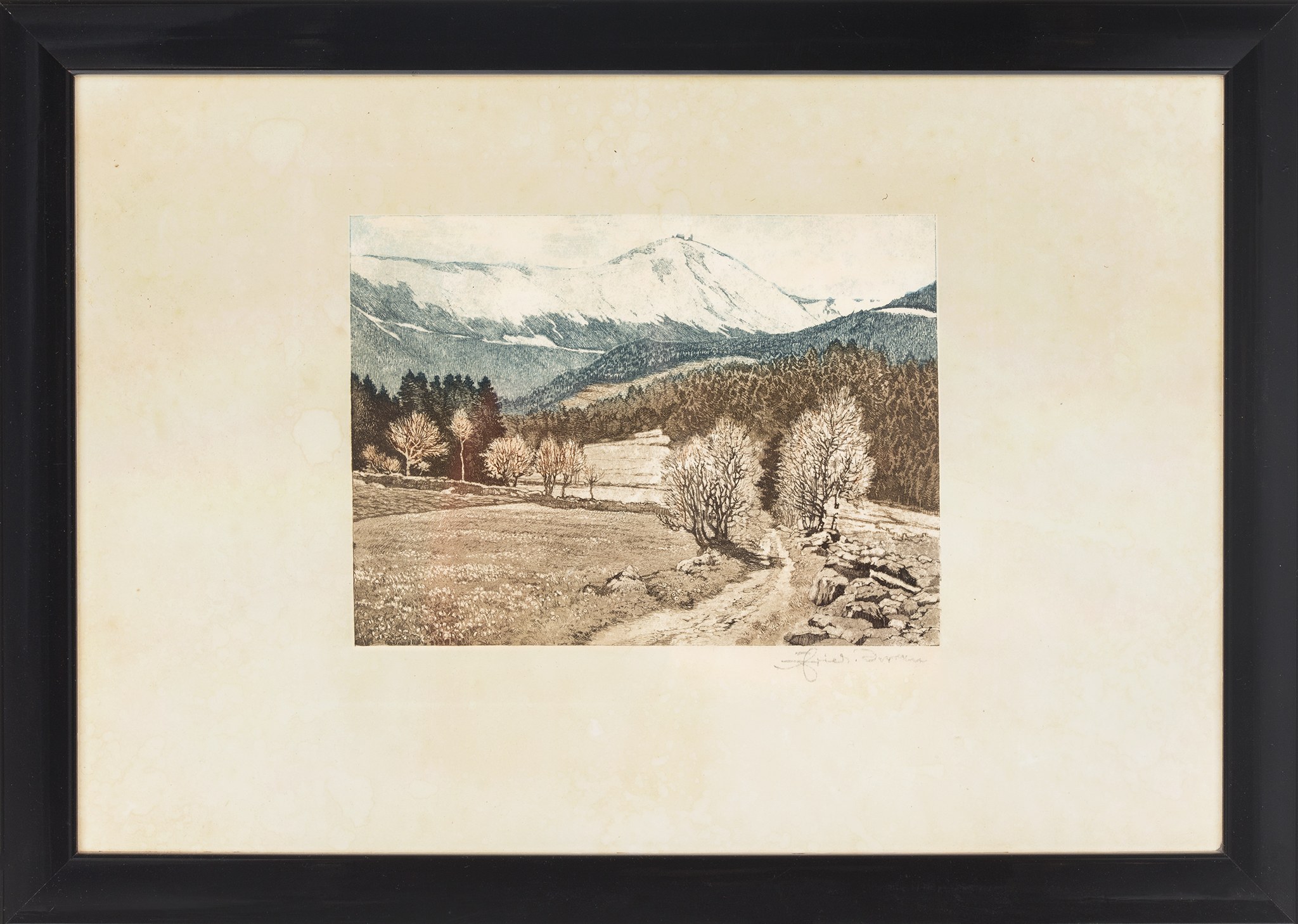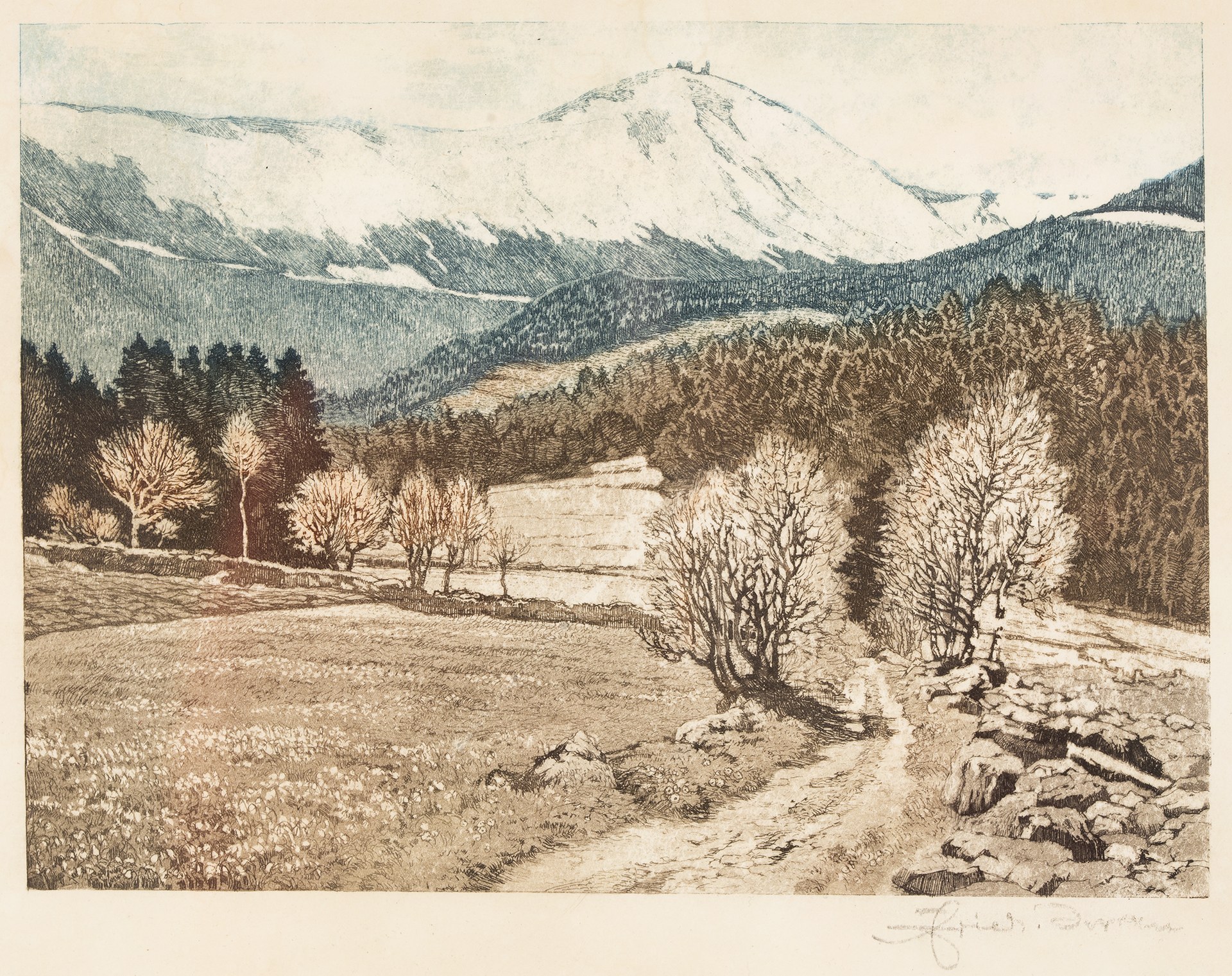 Akwatinta barwna, papier; wym. odb.: 131 x 180 mm; sygn. oł. p. d.: "Fried. Iwan"