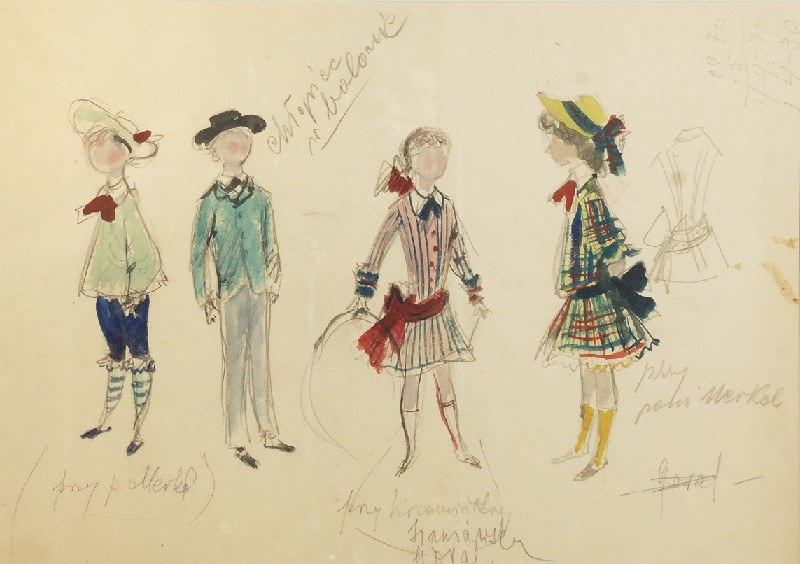 Kostium przeznaczony był dla postaci dzieci do spektaklu "Chłopiec latający" w Teatrze Polskim w Warszawie (data premiery 4 stycznia 1958).