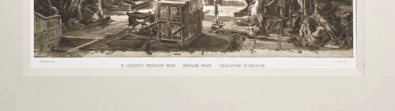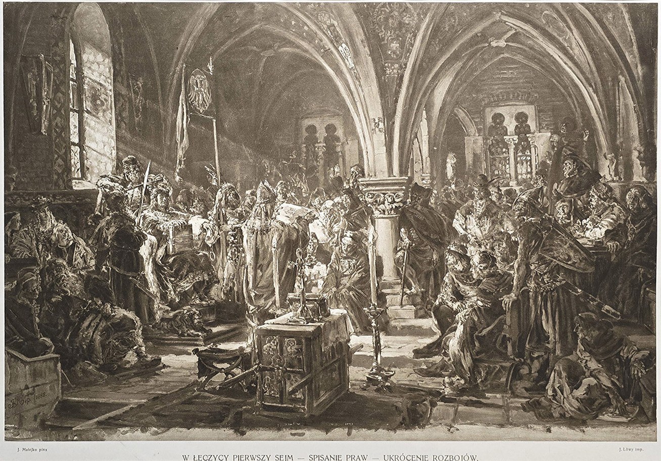 tytuł po środku u dołu: W ŁĘCZYCY PIERWSZY SEJM – SPISANIE PRAW – UKRÓCENIE ROZBOJÓW