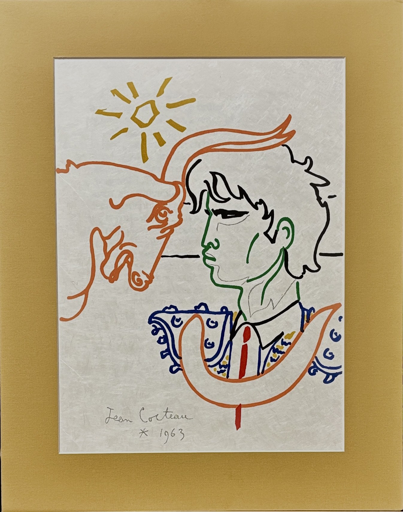 Litografia barwna na papierze japońskim (Japon nakre), wymiary: 37 x 27 cm w świetle passe-partout, 48 x 38 w oprawie p/p, sygnowana i datowana z płyty, nieumerowana, nakład ograniczony do 200 egzemplarzy, w tym 32 na papierze japońskim. Wydawcą serii «Taureaux. Lithographies de Jean Cocteau» z 1965 roku było paryskie wydawnictwo Éditions Michèle Trinckvel, litografie wykonano w Atelier Mourlot Frères w Paryżu.