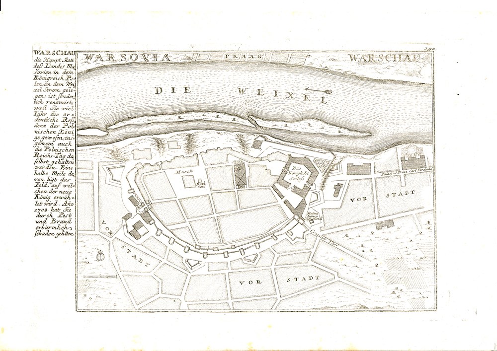 w kompozycji na górze tytuł: WARSOVIA; WARSCHAU z lewej tekst w języku niemieckim