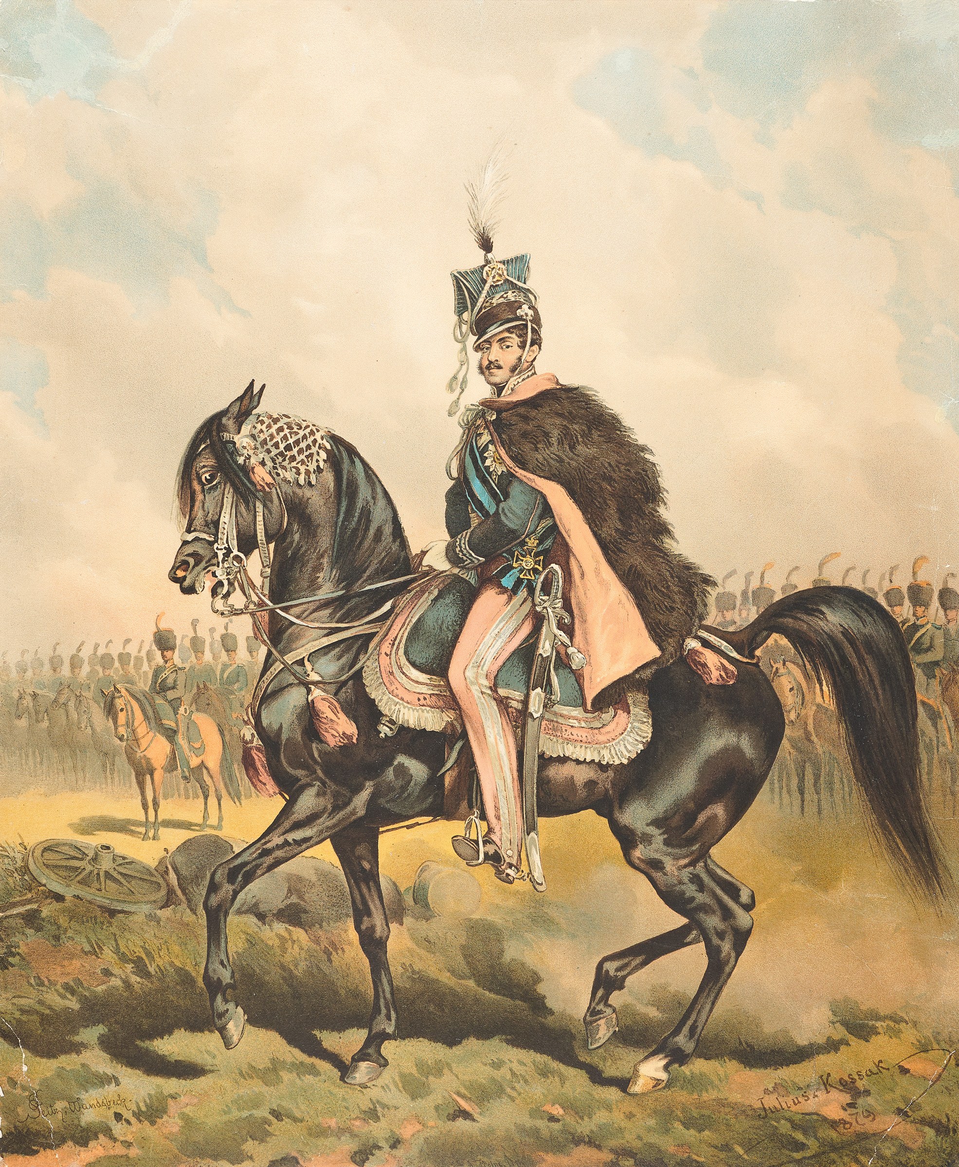 Chromolitografia; wym. 450 × 370 mm; sygn. pł. p.d.: Juliusz Kossak 1879, l.d. Seitz Wandsbeck. Praca z cyklu czterech konnych portretów bohaterów narodowych, odbita w wydawnictwie Gustawa Seitza w Wandsbeck k. Hamburga z inspiracji Juliusz Kossaka (pojedyncza plansza kosztowała w epoce 6 zł reńskich).