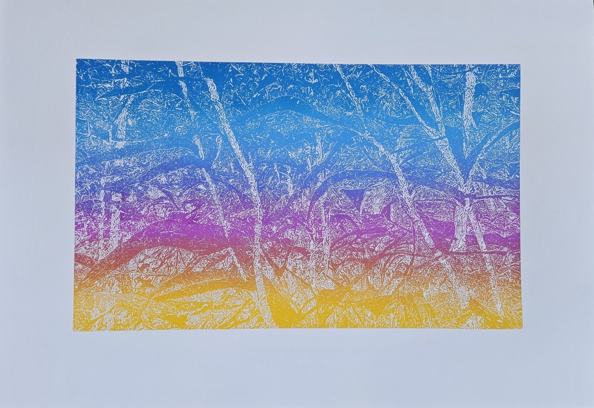 linoryt, papier, 70 x 100 cm (arkusz), kompozycja: 45 x 75 cm, 1/6, sygn. p.d.: Kamila Kościańska 2024