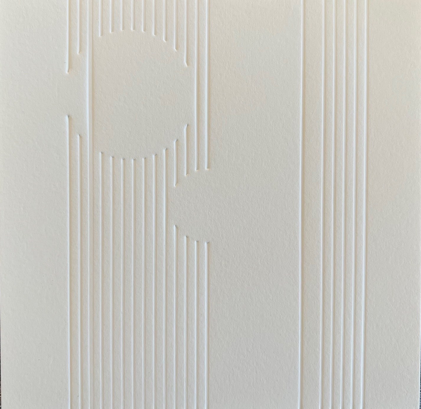 Katarzyna Tretyn, Z cyklu „Natalis” Nr 1, druk ślepy na papierze bawełnianym 20x20 cm, 2025 jest pracą minimalistyczną o niewielkich rozmiarach. We wnętrzu sprawdzi się jako dyptyk lub tryptyk. Natomiast z kolekcjonerskiego punktu widzenia praca ta jest interesująca zarówno pod względem techniki wykonania, jak też jako fragment twórczości artystki młodszego pokolenia, która sytuuje swoje artystyczne zainteresowania w obszarze między sztuka i nauką, albo raczej w polu wspólnym obu tych dziedzin. Kompozycja minimalistyczna, biała, jednolita formalnie, działająca jedynie poprzez wypukłość form rzucających mini-cienie dzięki padającemu na płaszczyzny światłu. Artystka będąc w początkowej fazie obecności na rynku sztuki warta jest kolekcjonerskiej uwagi i powolnego inwestowania w jej prace, przewiduję bowiem tendencje zwyżkową cen jej prac, zarówno na konwencjonalnych nośnikach, jak też w świetlnych instalacjach. Praca sygnowana na odwrocie. Stan bardzo dobry, bez oprawy. Galeria może zrealizować oprawę na zlecenie i koszt nabywcy.