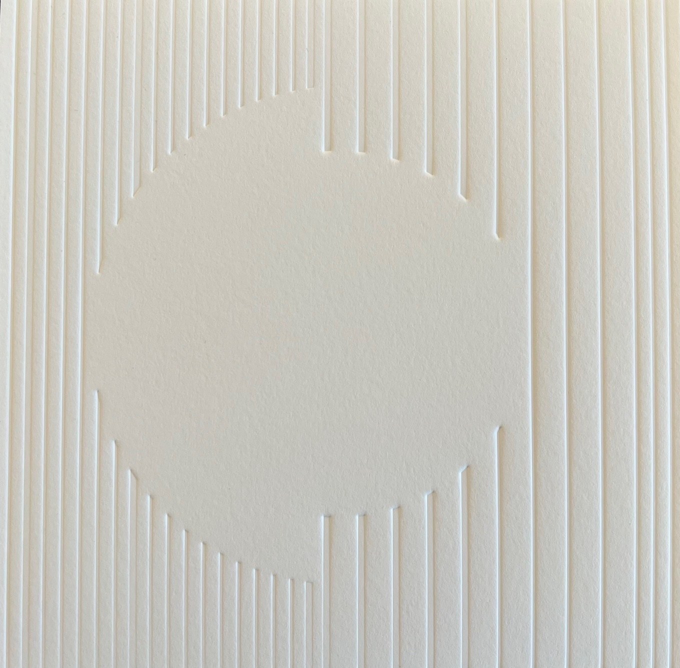 Katarzyna Tretyn, z cyklu „Natalis” Nr 2, druk ślepy na papierze bawełnianym 20x20 cm, 2025 jest pracą minimalistyczną o niewielkich rozmiarach. We wnętrzu sprawdzi się jako dyptyk lub tryptyk. Natomiast z kolekcjonerskiego punktu widzenia praca ta jest interesująca zarówno pod względem techniki wykonania, jak też jako fragment twórczości artystki młodszego pokolenia, która sytuuje swoje artystyczne zainteresowania w obszarze między sztuka i nauką, albo raczej w polu wspólnym obu tych dziedzin. Kompozycja minimalistyczna, biała, jednolita formalnie, działająca jedynie poprzez wypukłość form rzucających mini-cienie dzięki padającemu na płaszczyzny światłu. Artystka będąc w początkowej fazie obecności na rynku sztuki warta jest kolekcjonerskiej uwagi i powolnego inwestowania w jej prace, przewiduję bowiem tendencje zwyżkową cen jej prac, zarówno na konwencjonalnych nośnikach, jak też w świetlnych instalacjach. Praca sygnowana na odwrocie. Stan bardzo dobry, bez oprawy. Galeria może zrealizować oprawę na zlecenie i koszt nabywcy.