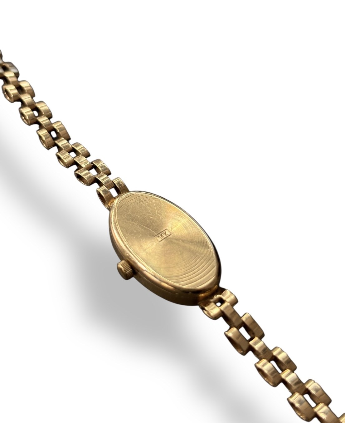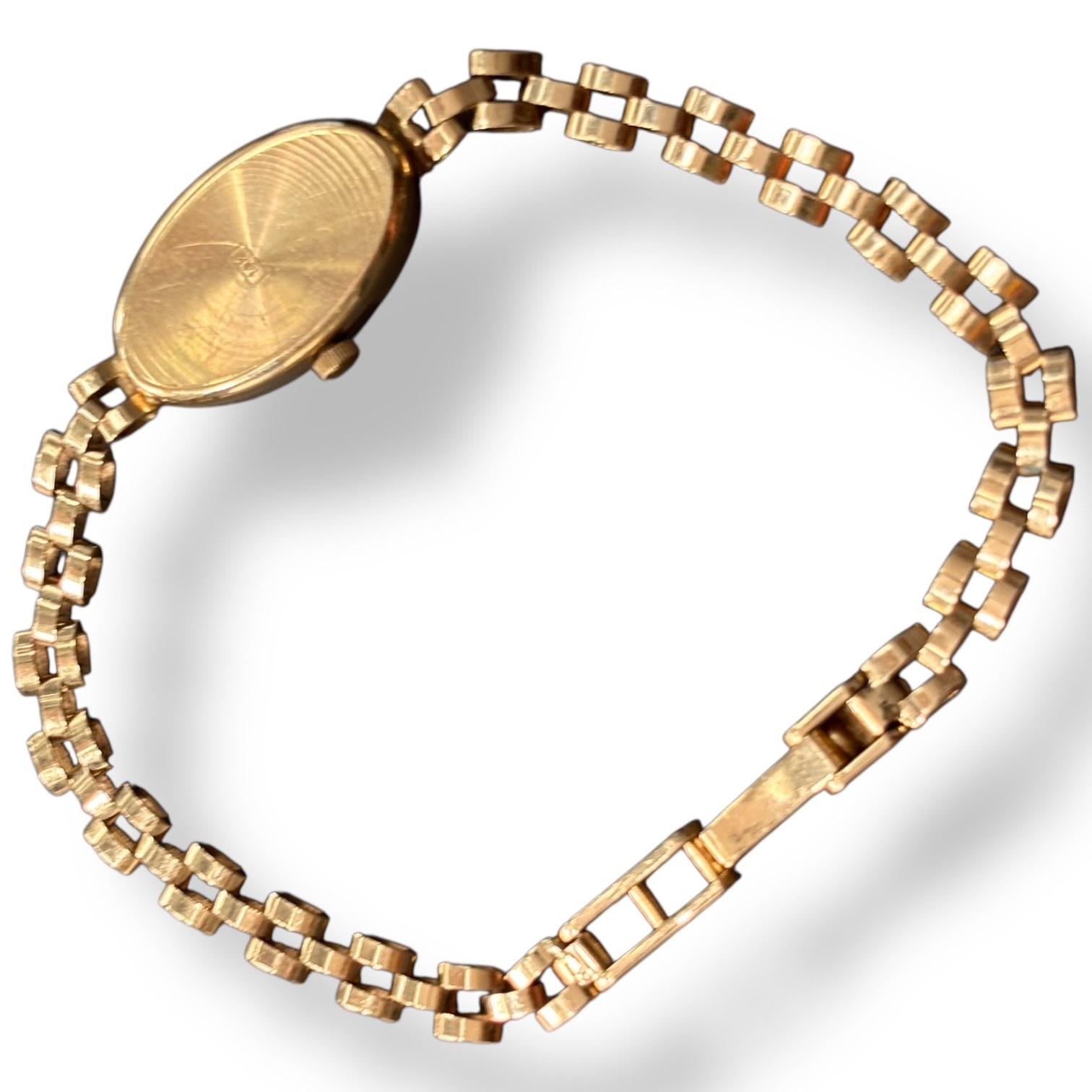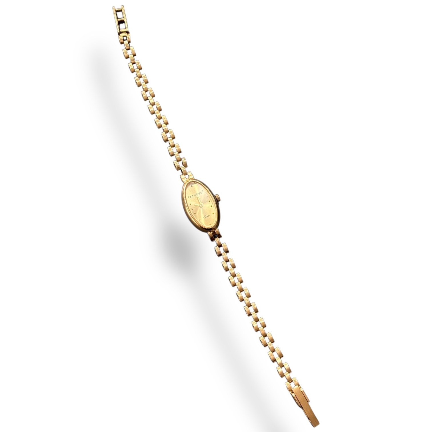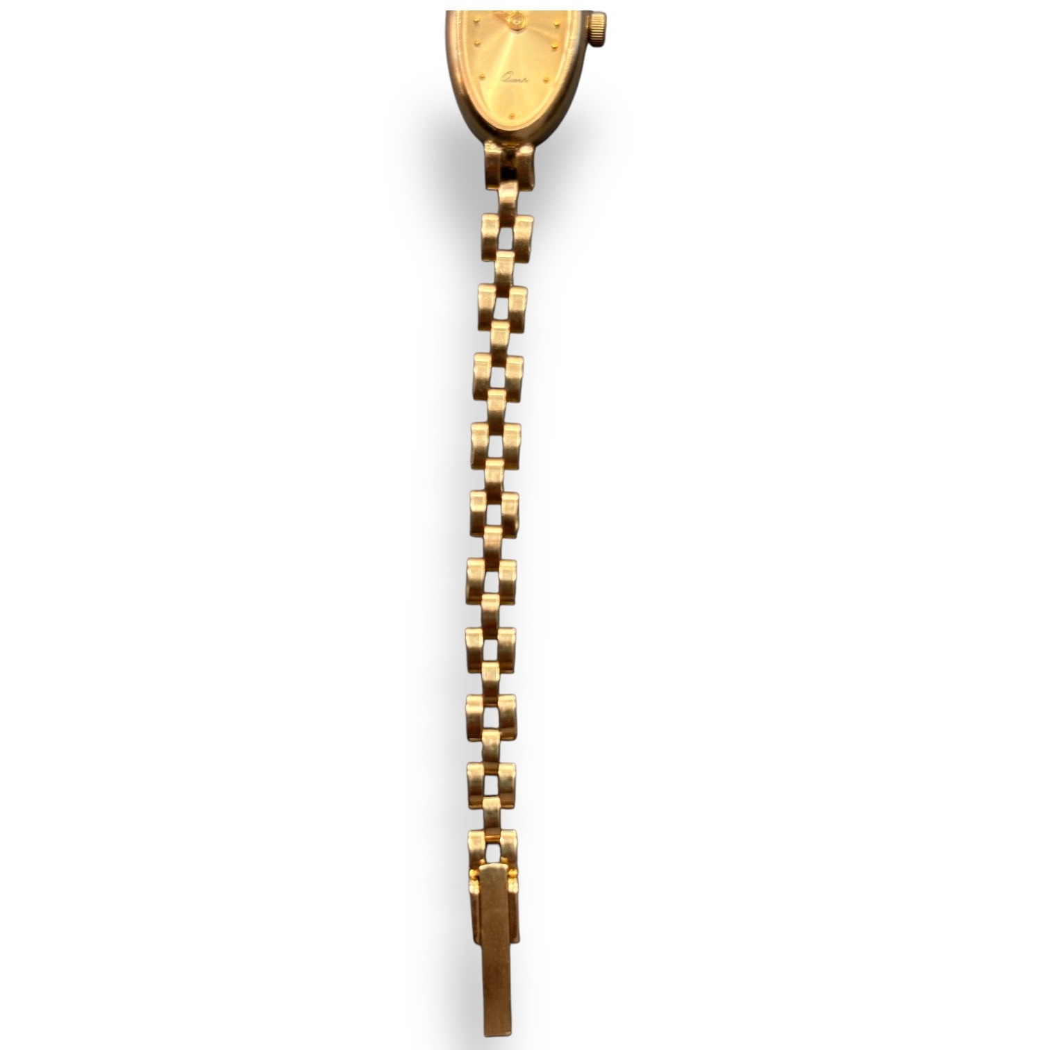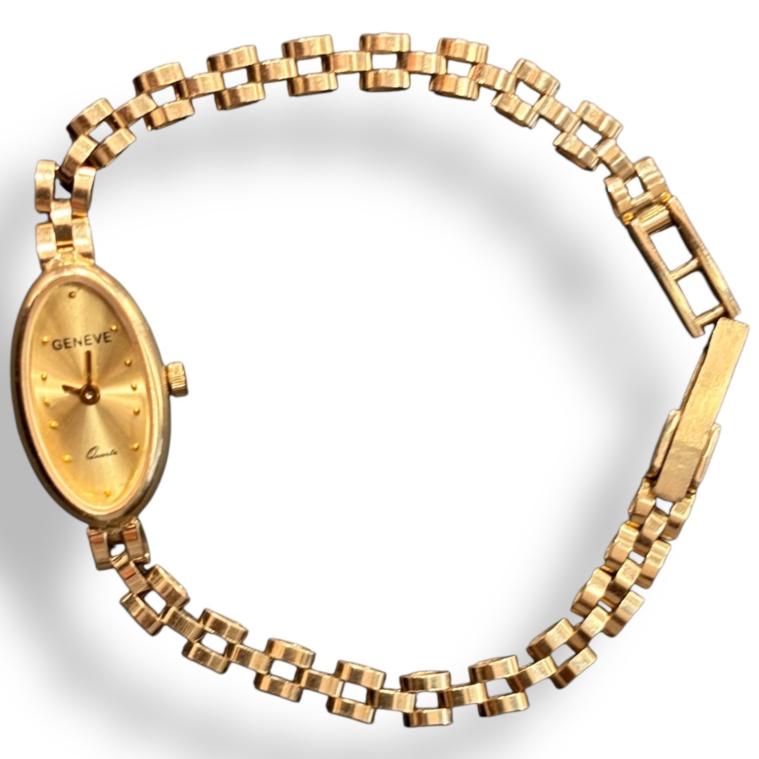 Złoty zegarek damski marki Geneve, sygnowany Elephant Gold.