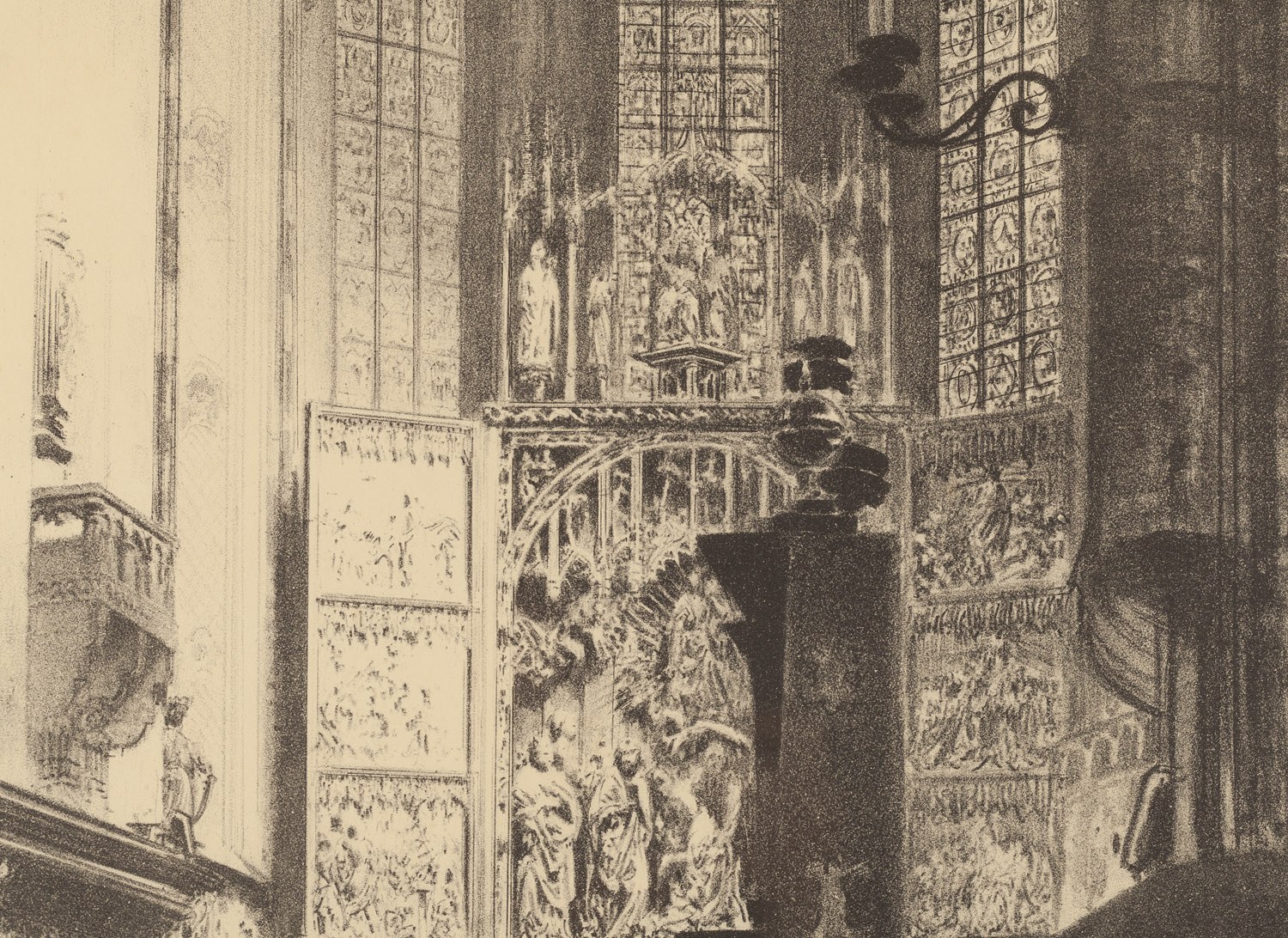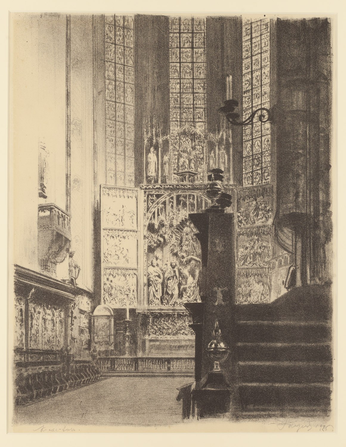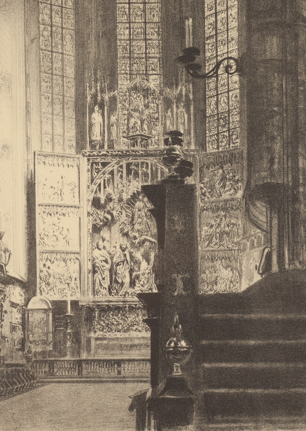 Praca pochodzi z teki "Jubileuszowej kościoła Panny Marii w Krakowie" wydanej w 1927 roku. W 1926 roku mijała siedemsetna rocznica powstania krakowskiego kościoła Mariackiego i z tej okazji Wyczółkowski przygotował 9 plansz przedstawiających świątynię, zarówno bryłę jak i wnętrza. Artysta z pomocą Władysława Werdekera odbił po 40 egzemplarzy każdej grafiki, a Stanisław Tomkowicz opatrzył tekę emocjonalnym wstępem.
