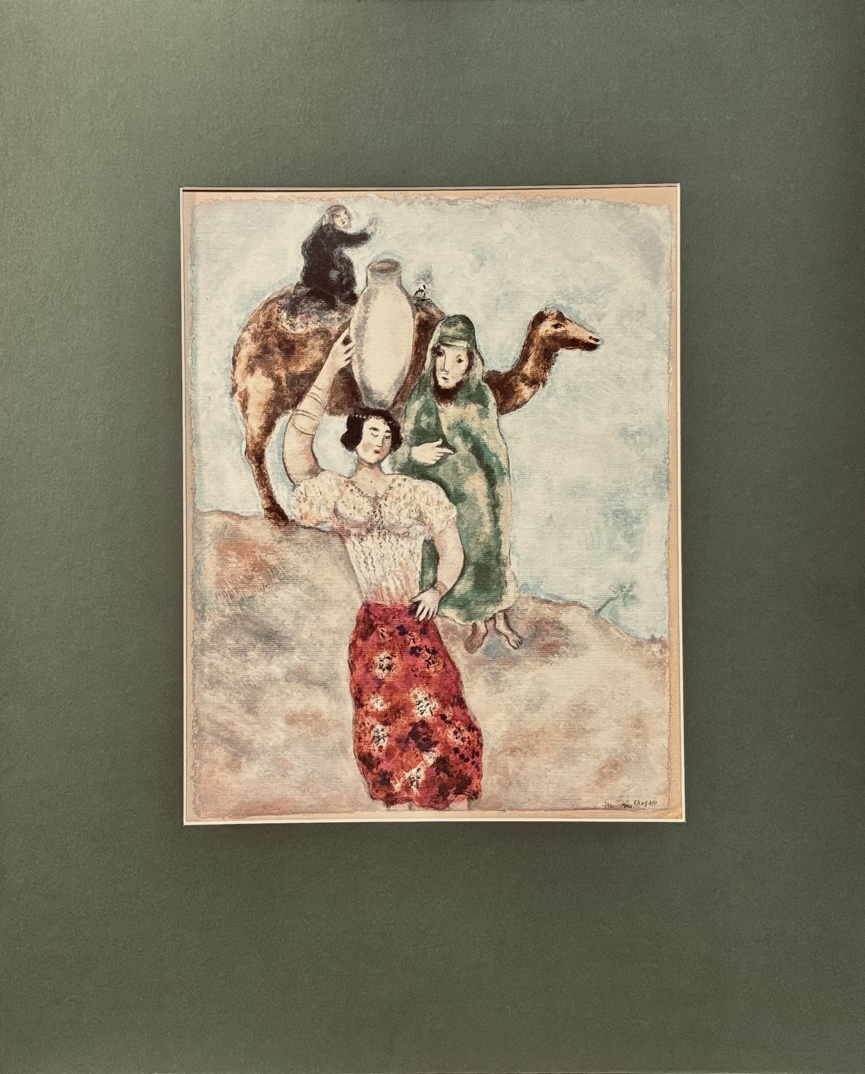 Temat z Księgi Rodzaju przedstawia Eliezera z Damaszku, sługę Abrahama, którego Abraham wysłał do Nachora w Chaldei w celu znalezienia odpowiedniej żony dla jego syna Izaaka. Eliezer postanawia wybrać tego, który zaoferuje jego i jego wielbłądom wodę do picia.