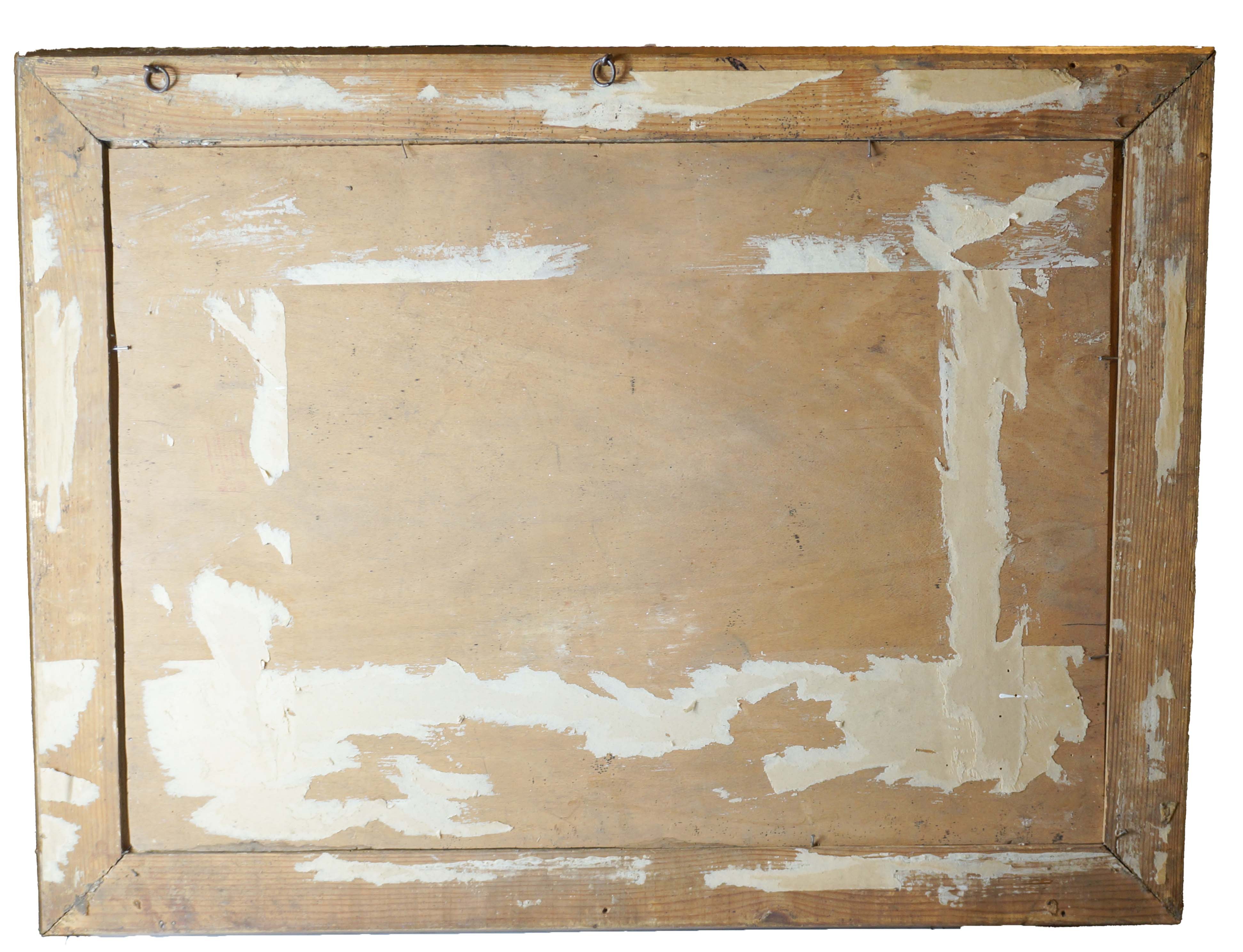 stan dobry, na odwrocie ślady po odklejaniu papieru zabezpieczającego [resztki papieru], rama złocona w dobrym stanie