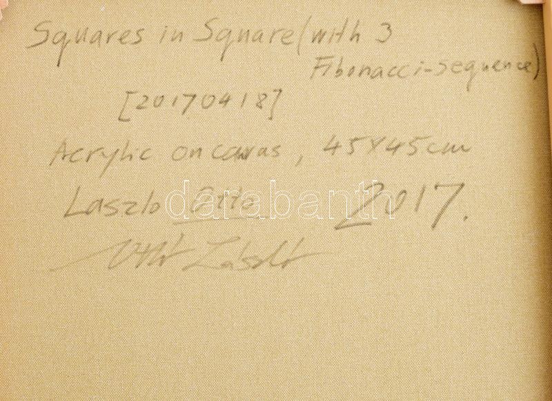 Ottó László (1966-): Squares in square/ with 3, Fibonacci sequence, 2017. Akril, vászon, jelzett a hátoldalán. 45×45 cm / Acrylic on canvas, signed on the reverse.