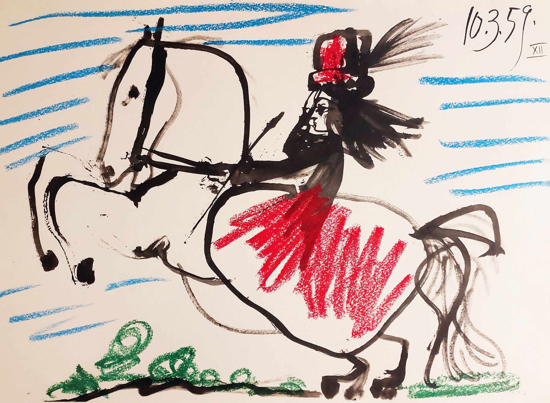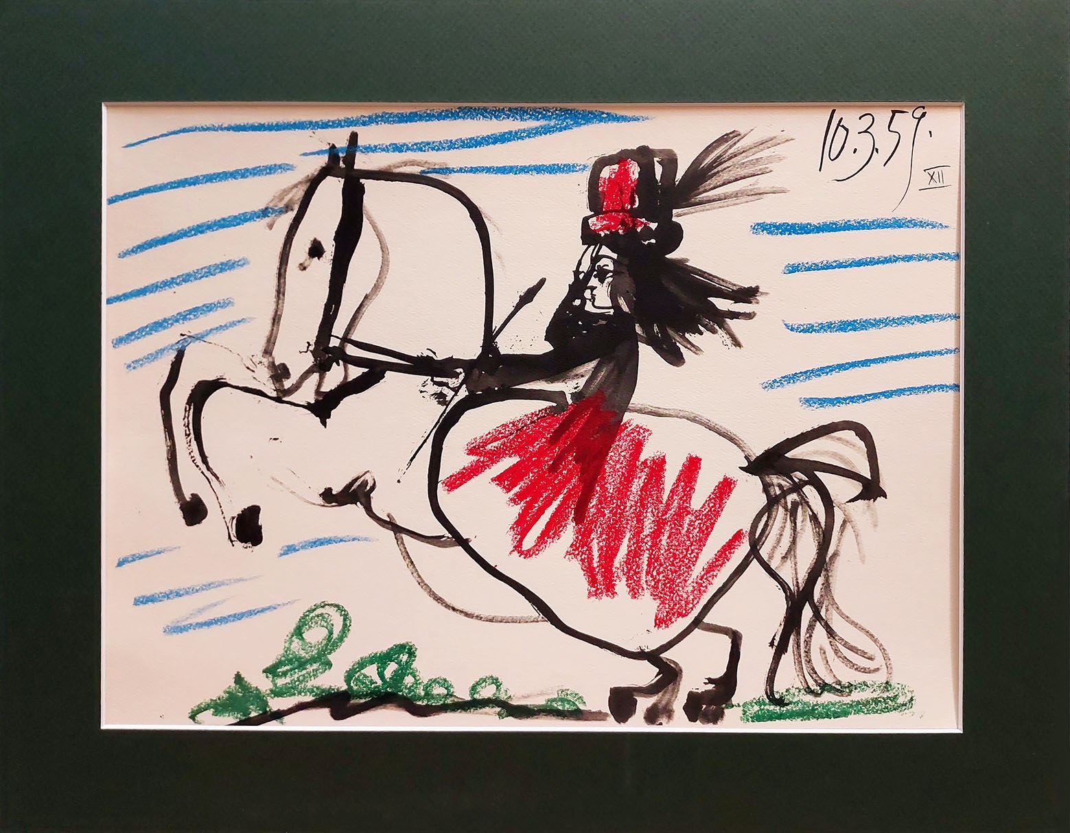 Litografia z cyklu „Toros Y Toreros”, z pierwszego francuskiego wydania 1961 r. , wydana za zgodą i za życia artysty. Grafika wykonana na wysokiej jakości akwarelowym papierze Arches.