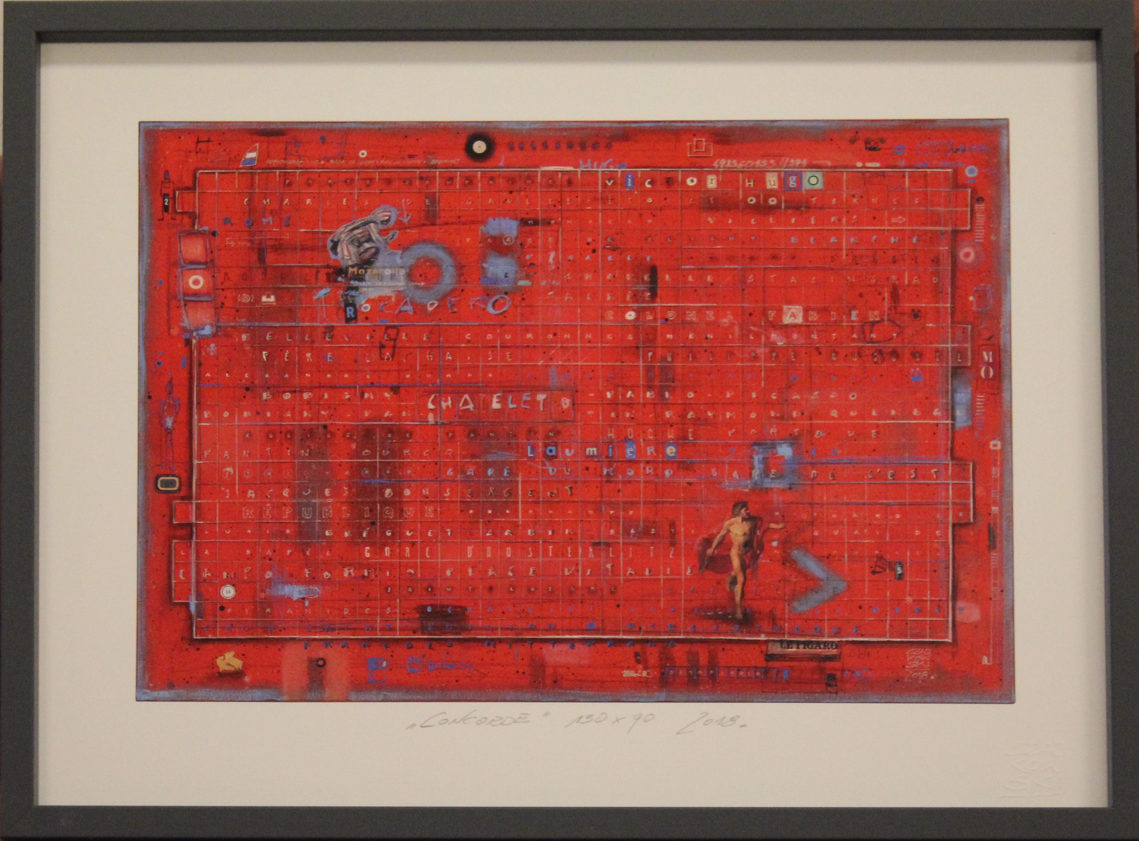 praca oprawiona, wymiary w ramie: 31,5 x 41,5 cm; sygnatura opis, datowanie na papierze: Concorde 150 x 130 2018