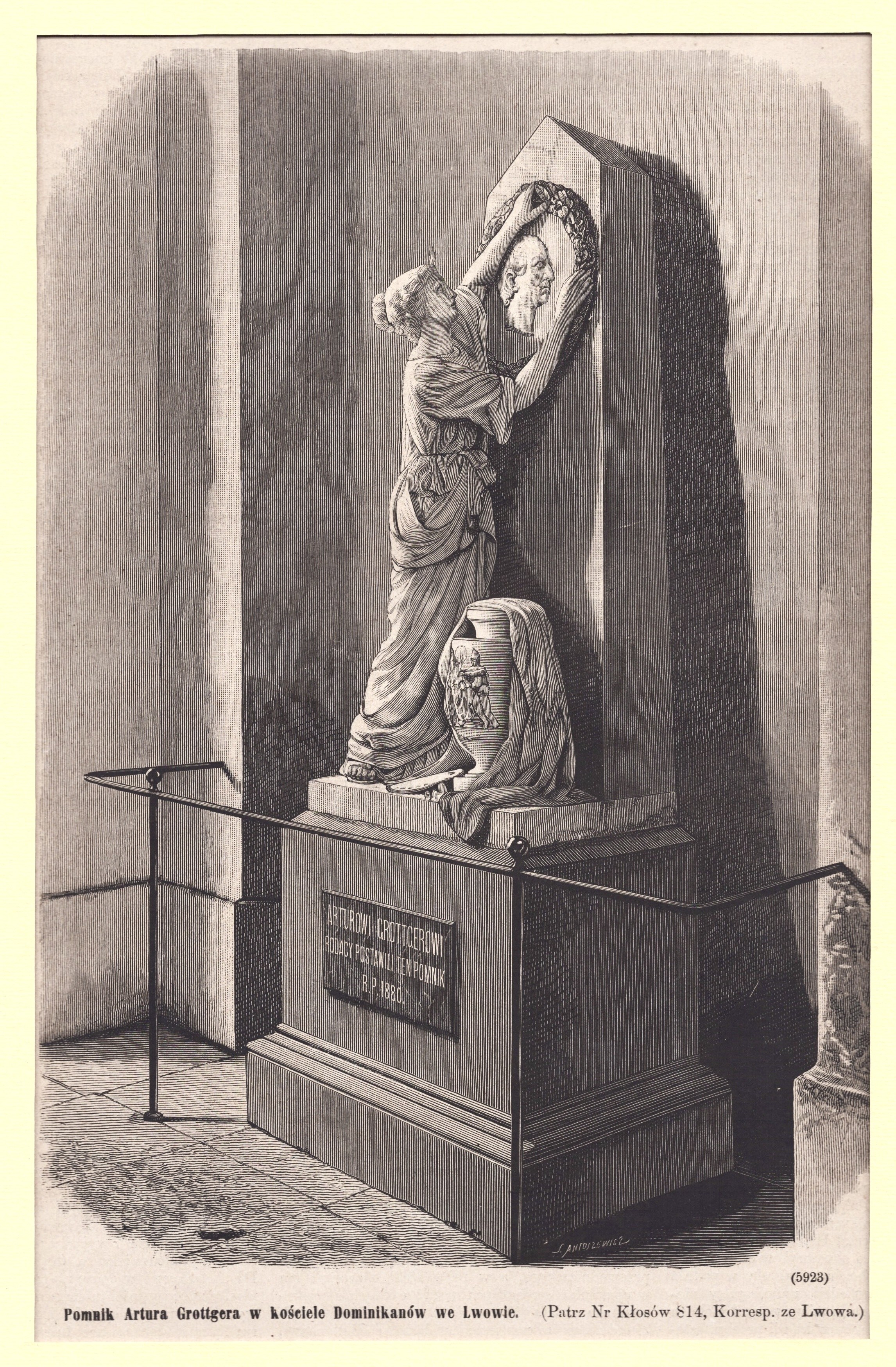 Pomnik Artura Grottgera w kościele Dominikanów we Lwowie. [drzeworyt z "Kłosów" nr 823 z 1881 r.]