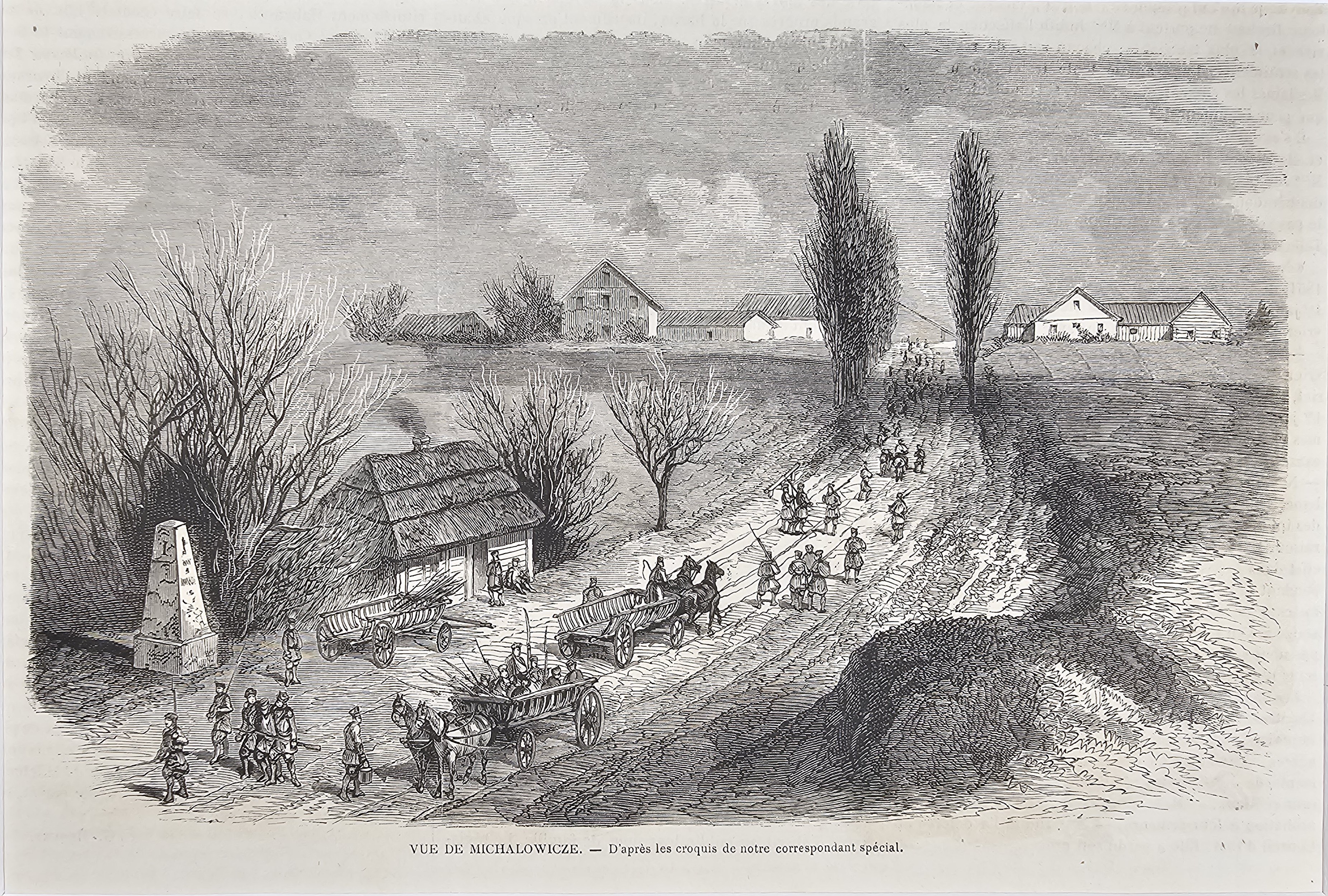 [Powstanie styczniowe] Oddziały powstańcze na drodze do Michałowic, 1863.