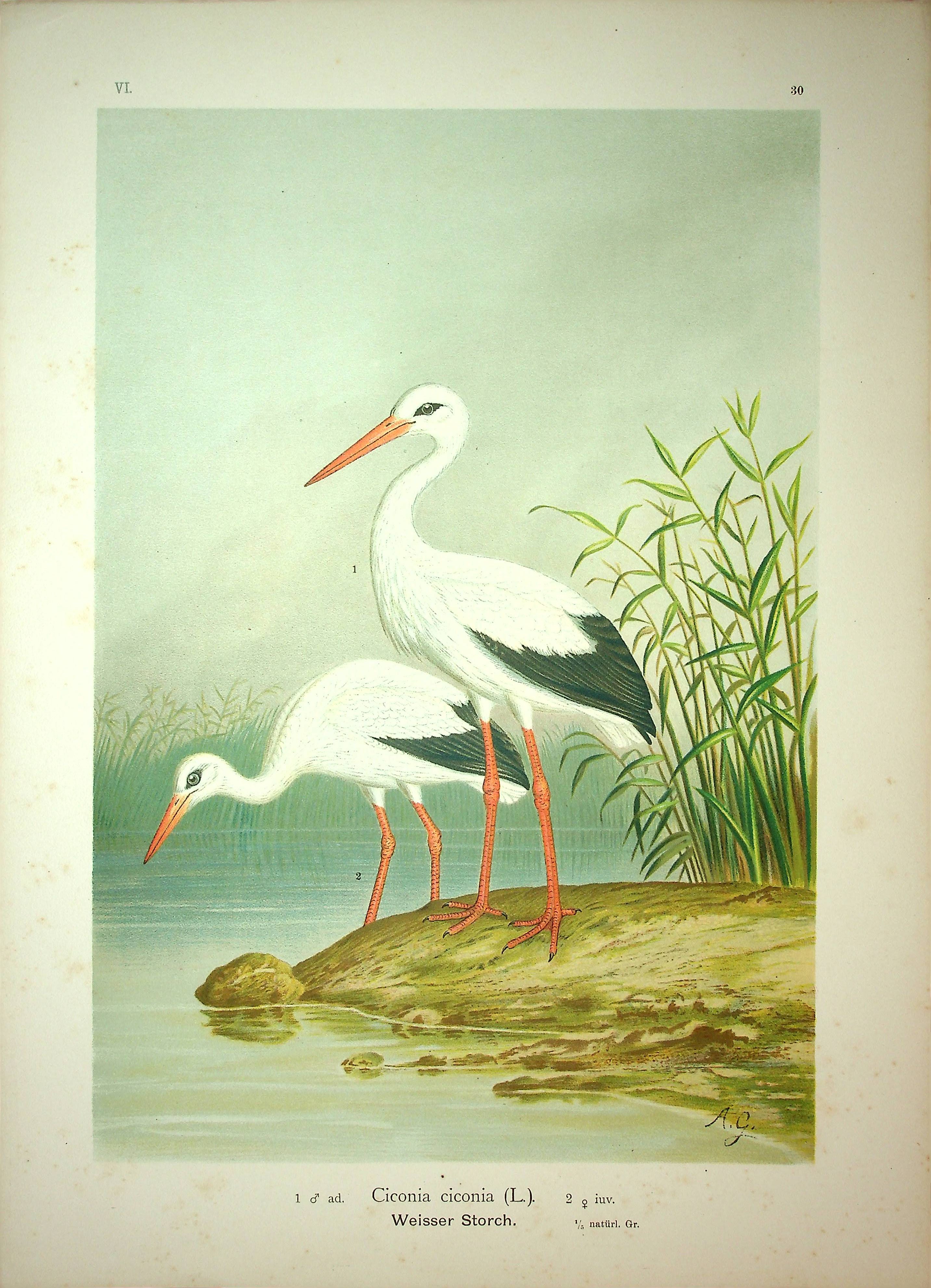 BOCIAN ,,CICONIA CICONIA`` chromolitografia z NAUMANN Historia naturalna Ptaków