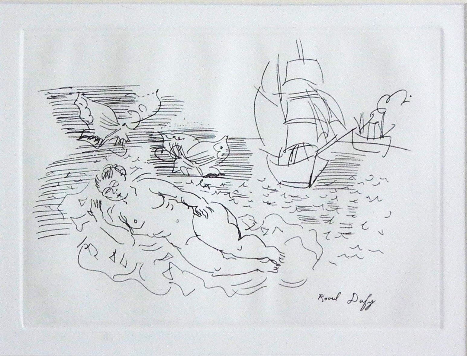 Akwaforta „re-strike” na tincie, papier welinowy Arches France o wysokiej gramaturze; 22 x 30 (odcisk płyty), 38 x 48 (arkusz), sygn. z płyty pod kompozycją „Raoul Dufy”,