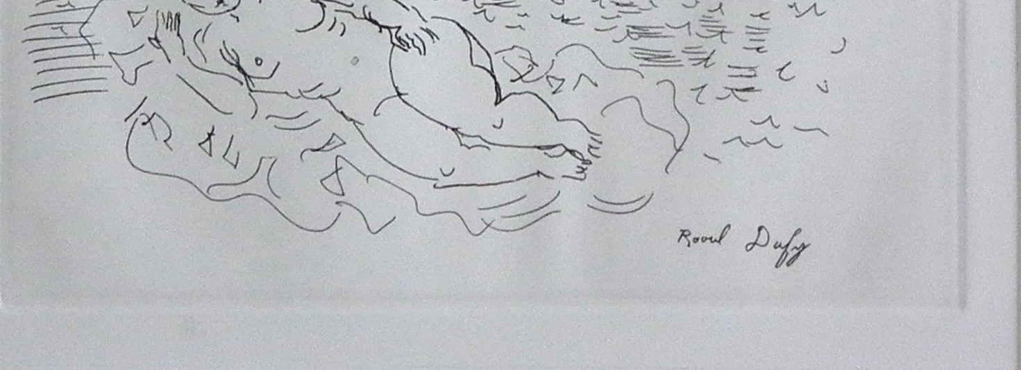 Szkic „Mały kąpiący się motyl” odnosi się do tematyki plażowej i nadmorskiej, co było częstym motywem w twórczości Dufy'ego. Może on symbolizować relaks, przyjemność z bycia na plaży czy też po prostu chwilę spokoju i wytchnienia. Mimo ograniczeń medium, szkic emanuje radością życia, typową dla dzieł Dufy'ego. Możliwe, że ten rysunek powstał w czasie, gdy Dufy spędzał wakacje nad francuskim wybrzeżem, kiedy światło słoneczne rozjaśniało wszystko wokół, a życie na plaży pulsuje energią. Być może artysta po prostu wyjął swój notes i szybko wyczarował tę uroczą scenkę, chwytając wrażliwość chwili. Prace Raoula Dufy można znaleźć w wielu renomowanych muzeach sztuki na całym świecie, takich jak Muzeum Sztuki Nowoczesnej (MoMA) w Nowym Jorku, Luwr w Paryżu czy Tate Modern w Londynie. Ponadto, wiele jego dzieł znajduje się w prywatnych kolekcjach i galeriach sztuki. Dzięki swojemu wyjątkowemu stylowi i wpływowi na sztukę XX wieku, Raoul Dufy pozostaje jednym z najbardziej znaczących artystów swojej epoki, a jego prace cieszą się ciągłym uznaniem i zainteresowaniem zarówno wśród kolekcjonerów, jak i miłośników sztuki.