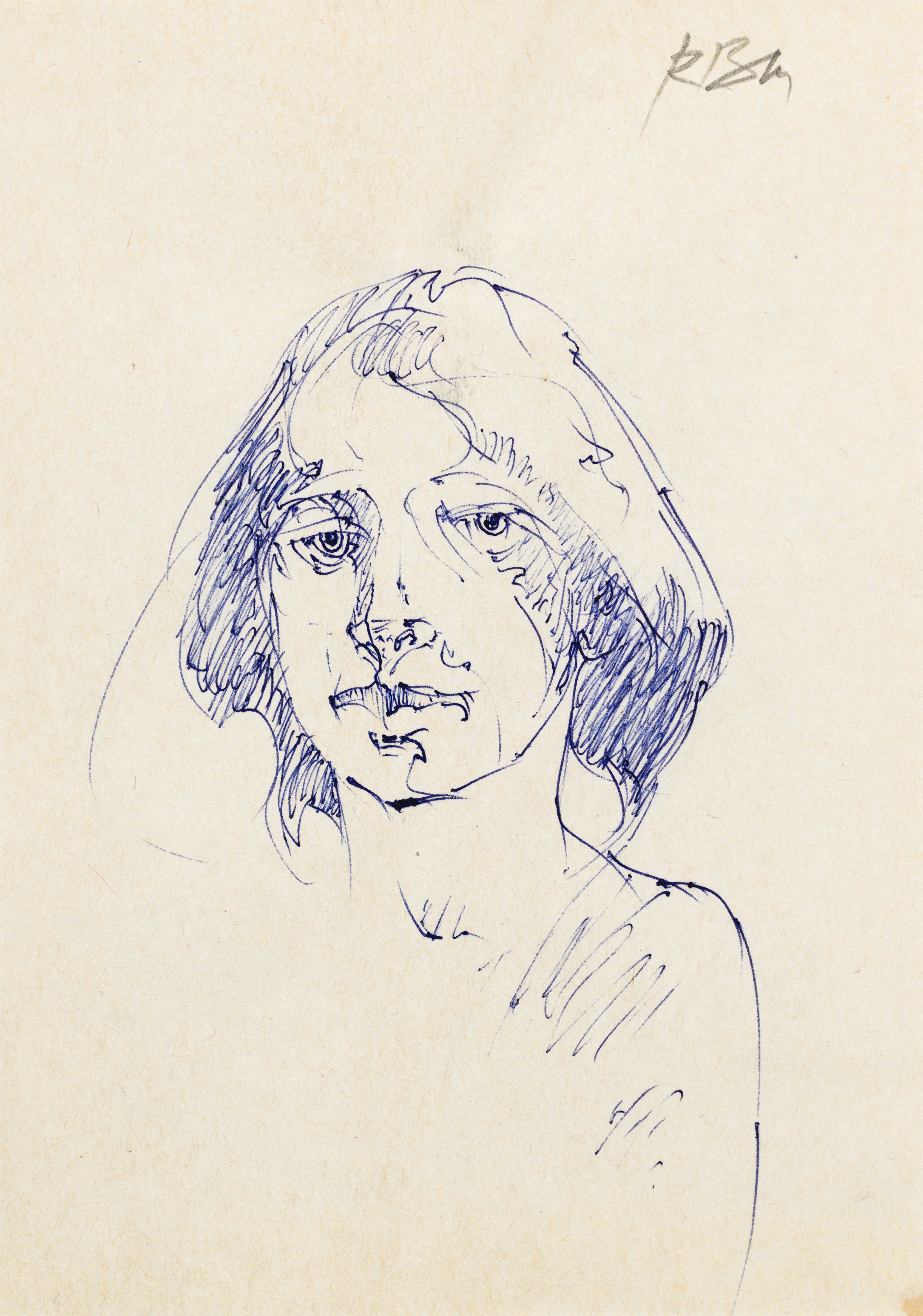 długopis, tusz niebieski, papier; 20,5 x 14,3 cm (wym. arkusza ze szkicem), 29,7 x 20,5 cm (wymiar arkusza);