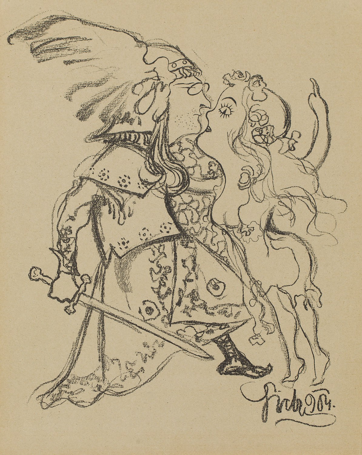 20. Kazimierz Sichulski (1879-1942), Józef Sosnowski i Władysława Ordonówna w Bolesławie Śmiałym, litografia/ papier, 34,5 x 27,3 cm